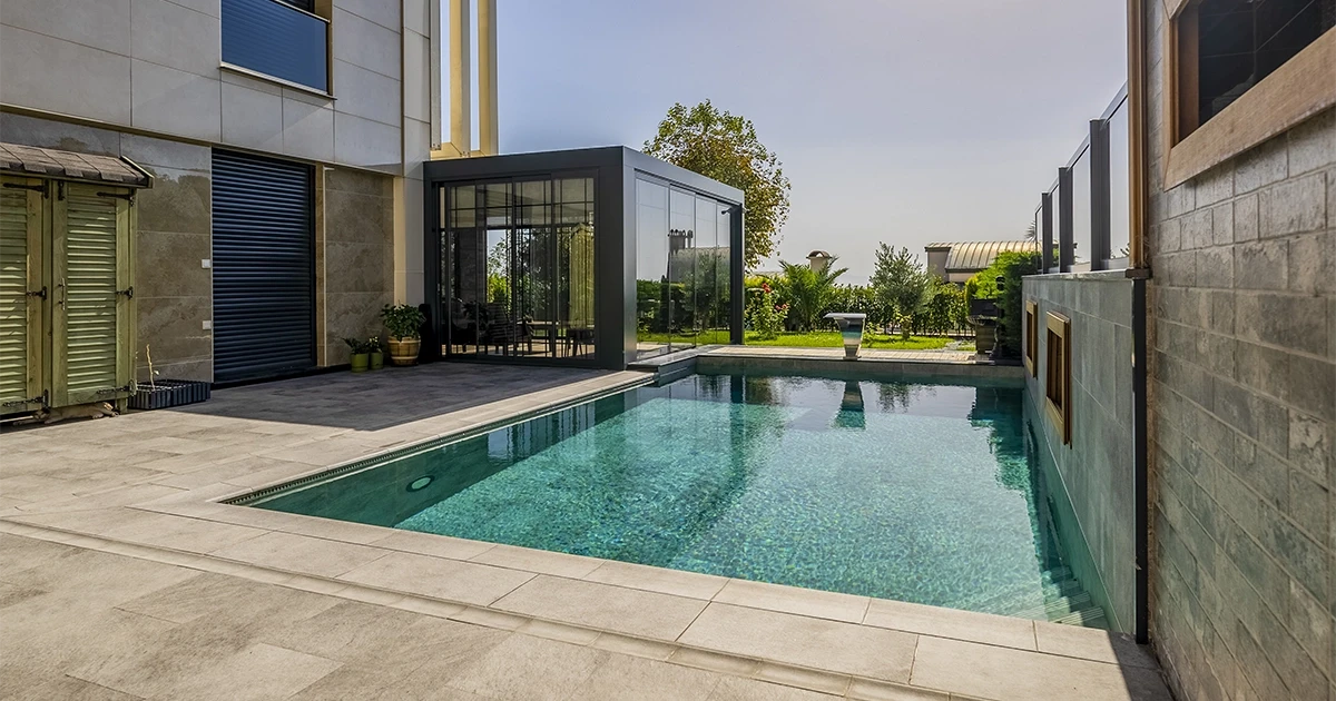 مشروع مسبح فيلا إسطنبول باللون الرمادي العتيق