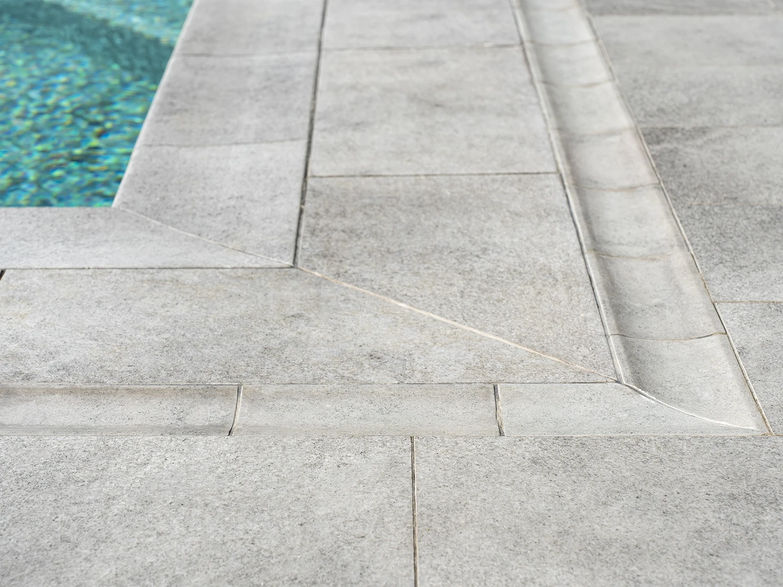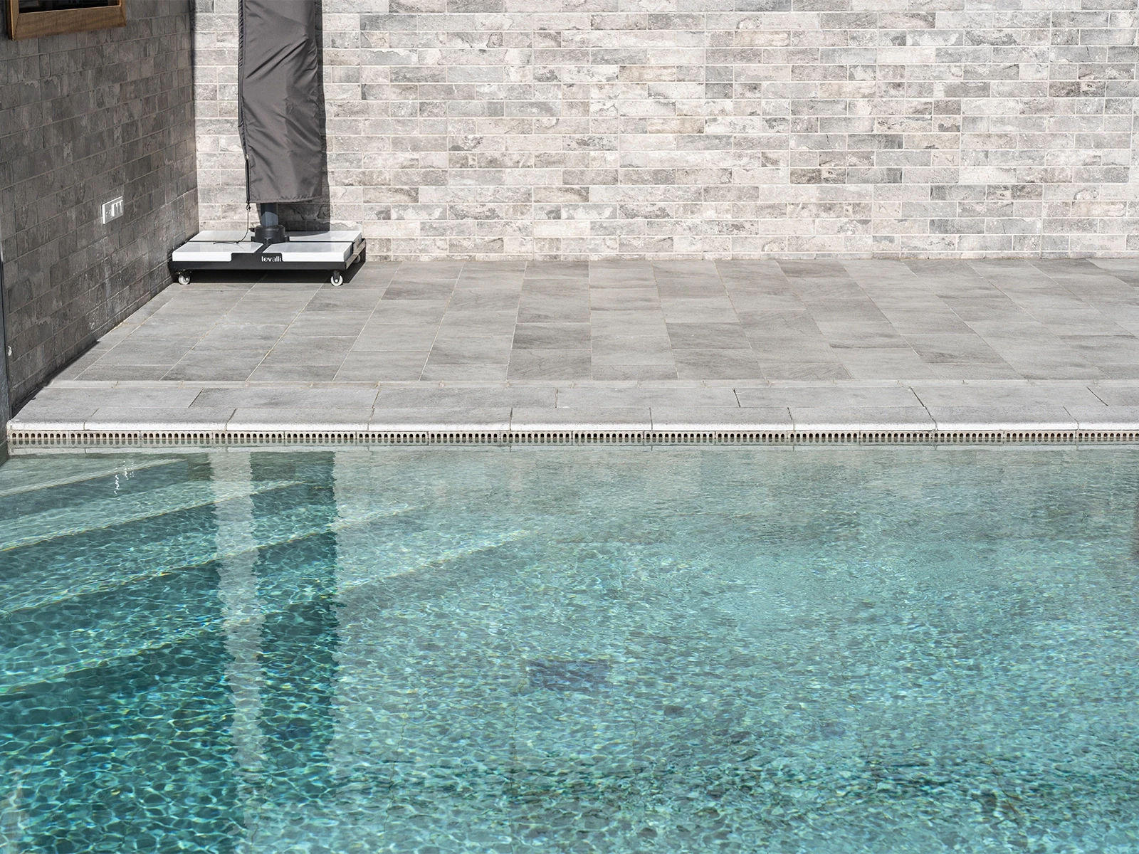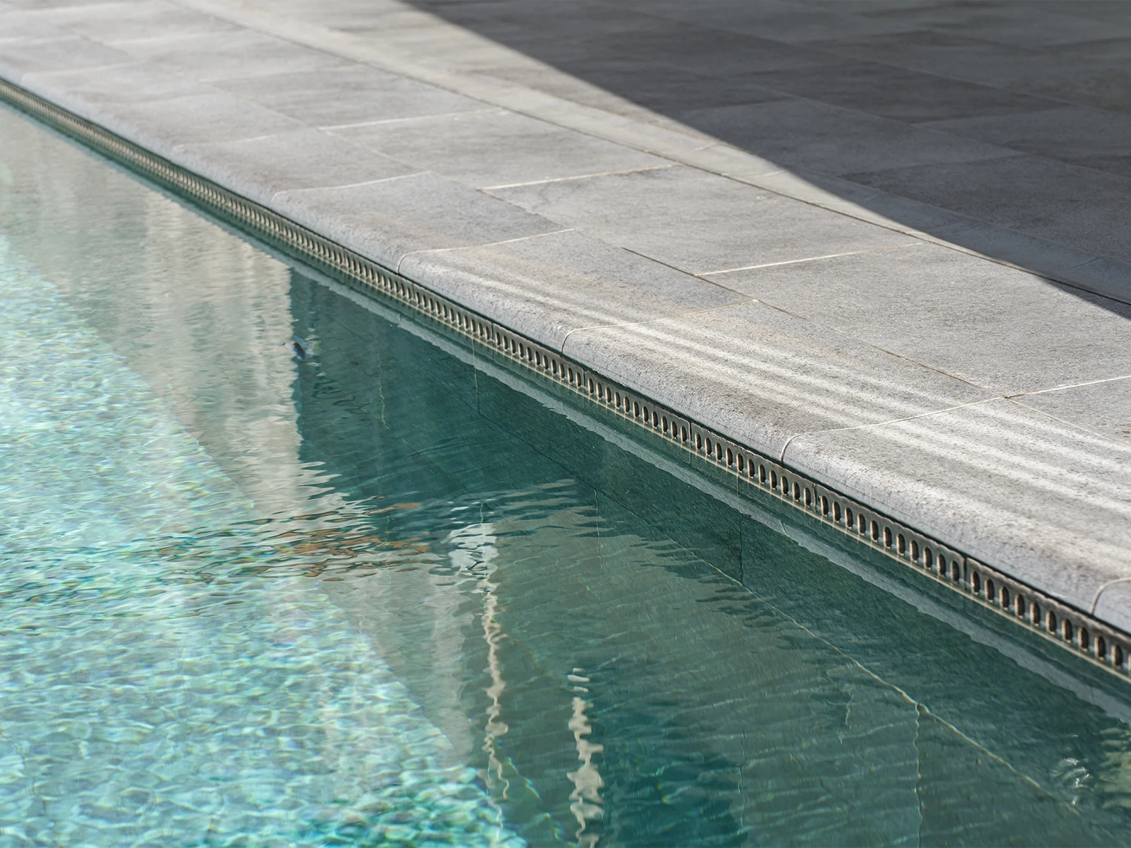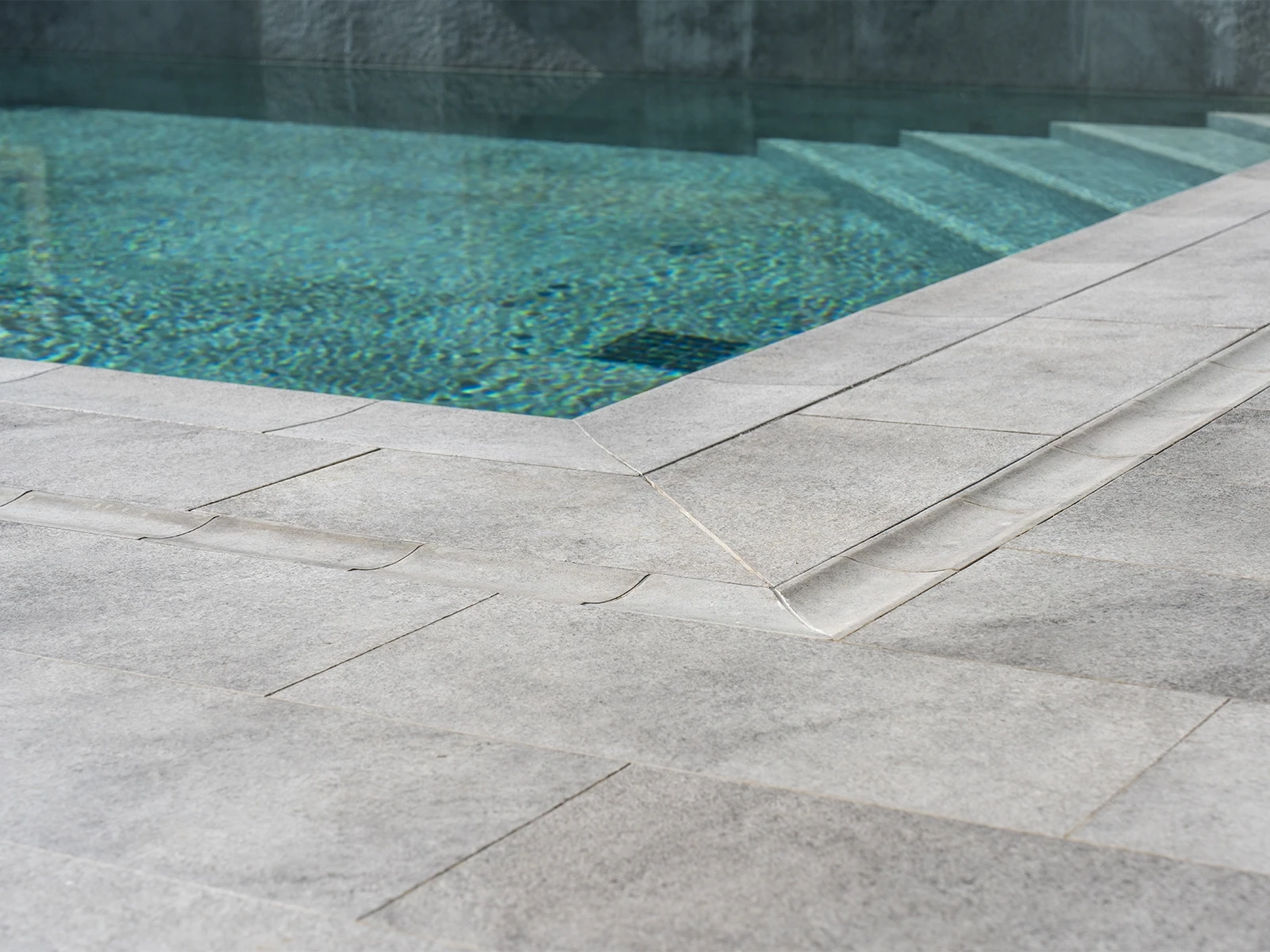 يبرز مشروع مسبح فيلا Antique Grey إسطنبول كتطبيق مميّز يلتقي فيه الجمال مع التقنية. وتقدّم المنتجات المستخدمة في المشروع ليس الأناقة فحسب، بل تجمع في الوقت ذاته بين الأمان والمتانة والوظيفية. ويوفّر مسك Pool Garden Grey Flat مظهرًا عصريًا بخطوطه البسيطة على حواف المسبح، حيث يتم تطبيقه على نفس مستوى بلاطات التراس ليشكّل انتقالًا متواصلًا دون انقطاع. ويساهم الجزء الأمامي المشطوف في تقليل مخاطر الاصطدام، بينما يوفّر سطحه المانع للانزلاق إمكانية مشي آمنة. وبفضل بنيته غير المسامية، لا يمتص الماء، ولا يتعرّض للتشقّق في ظروف الصقيع، كما يتمتّع بمقاومة عالية للمواد الكيميائية. أما قناة تصريف مياه الأمطار Pool Garden Grey المستخدمة في نظام تصريف مياه الأمطار، فتضمن بقدرتها العالية على التصريف إبعاد المياه بشكل متحكَّم فيه. وبذلك يتم الحفاظ على سلامة الأرضية، مع تسهيل صيانة المسبح دون الإخلال بالتوازن الكيميائي لمياهه. وتوفّر النسخة المثقبة تصريفًا فوريًا للمياه، ما يزيل المخاطر المحتملة بعد هطول الأمطار. وتُكمل قطع الزوايا والنهايات الخاصة بقناة Pool Garden Grey خط القناة بشكل جمالي متناسق. وتتميّز جميع المنتجات المستخدمة في المشروع بمقاومة عالية للأشعة فوق البنفسجية وتغيّرات درجات الحرارة والمواد الكيميائية، كما توفّر استخدامًا آمنًا على الأسطح الرطبة بفضل قيمة مقاومة الانزلاق PTV ≥ 45°.