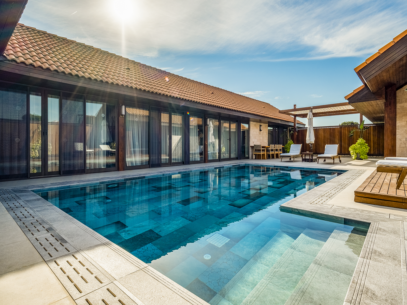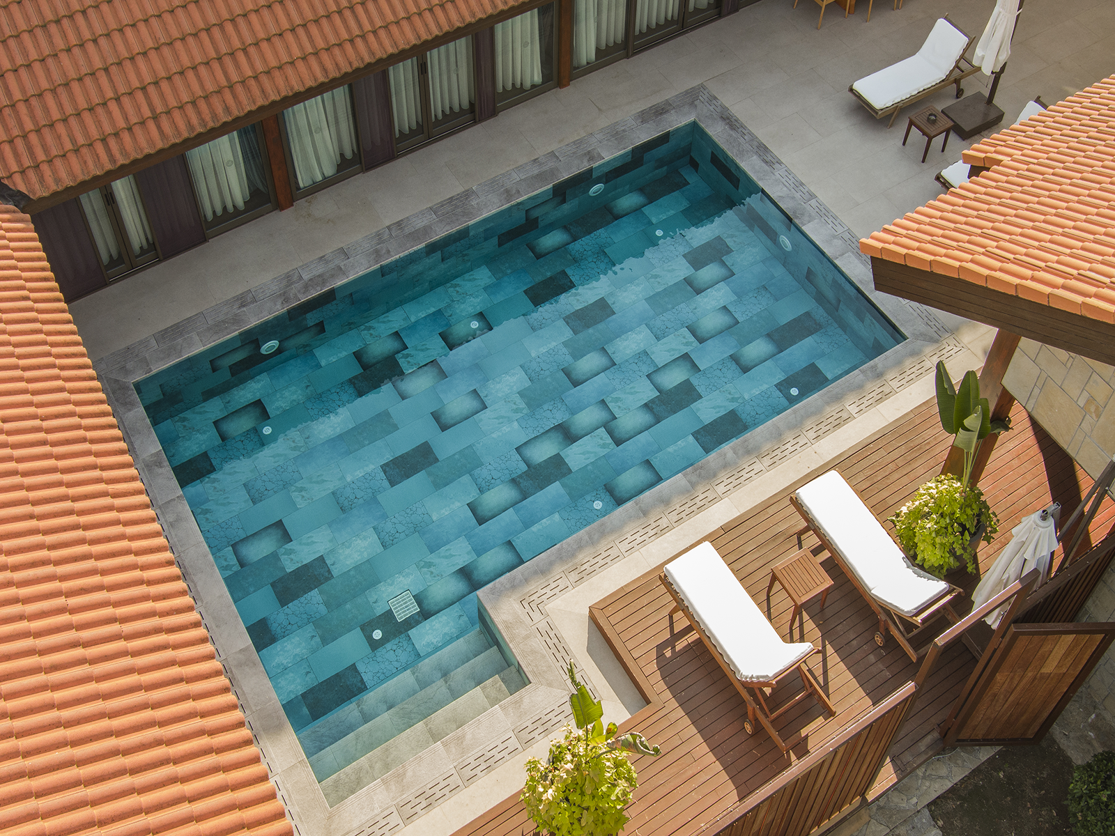 Die Schwimmbeckenfliesen der Firuze Mix Serie vereinen den erfrischenden Geist des Mittelmeers mit modernem Designverständnis und bieten durch ihre 100 % Porzellanstruktur sowohl Ästhetik als auch Langlebigkeit. Die beeindruckende Serie mit verschiedenen Blautönen passt sich der natürlichen Bewegung des Wassers an und verleiht dem Becken eine einzigartige, lebendige Charakteristik. Mit dynamischen Musterverläufen und einer rutschfesten, strukturierten Oberfläche bietet Firuze Mix sowohl optische Harmonie als auch sichere Nutzung und bringt so eine schlichte, aber auffallend elegante Ästhetik in Ihre Lebensräume.