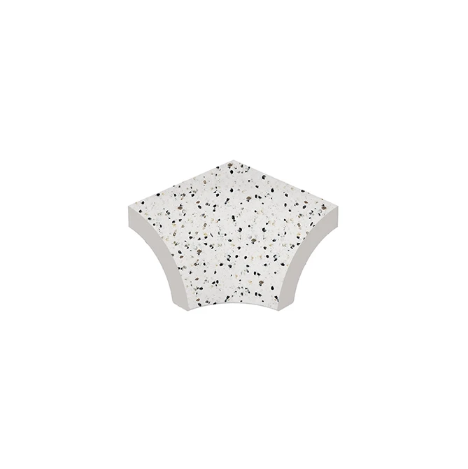 Relax Pebble White Außenecke mit Radialleiste ist ein Porzellan-Komplementärteil mit halbrundem und geschwungenem Design, das Ästhetik und Funktionalität in Schwimmbädern vereint. Es unterstützt besonders an den Schnittpunkten des Schwimmbeckenbodens die Sicherheit und visuelle Einheit, die von Radialleiste geboten wird. Mit seiner 100% Porzellan-Struktur bietet es Hygiene und Langlebigkeit in einem.