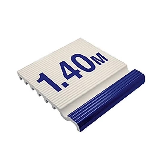Beckenrand mit Tiefenmarkierungen auf Universal Serie sind spezielle Porzellanfliesen, die auf dem Universal Beckenrandstein angebracht werden und zur Warnung und Information am Beckenrand dienen. Sie können für verschiedene Zwecke wie Beckentiefe-Texte, Richtungsangaben und Warnhinweise am Beckenrand verwendet werden.