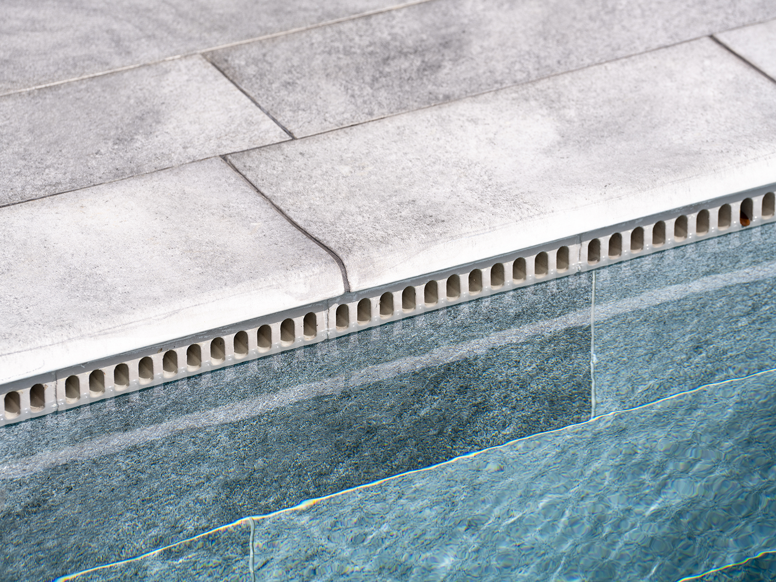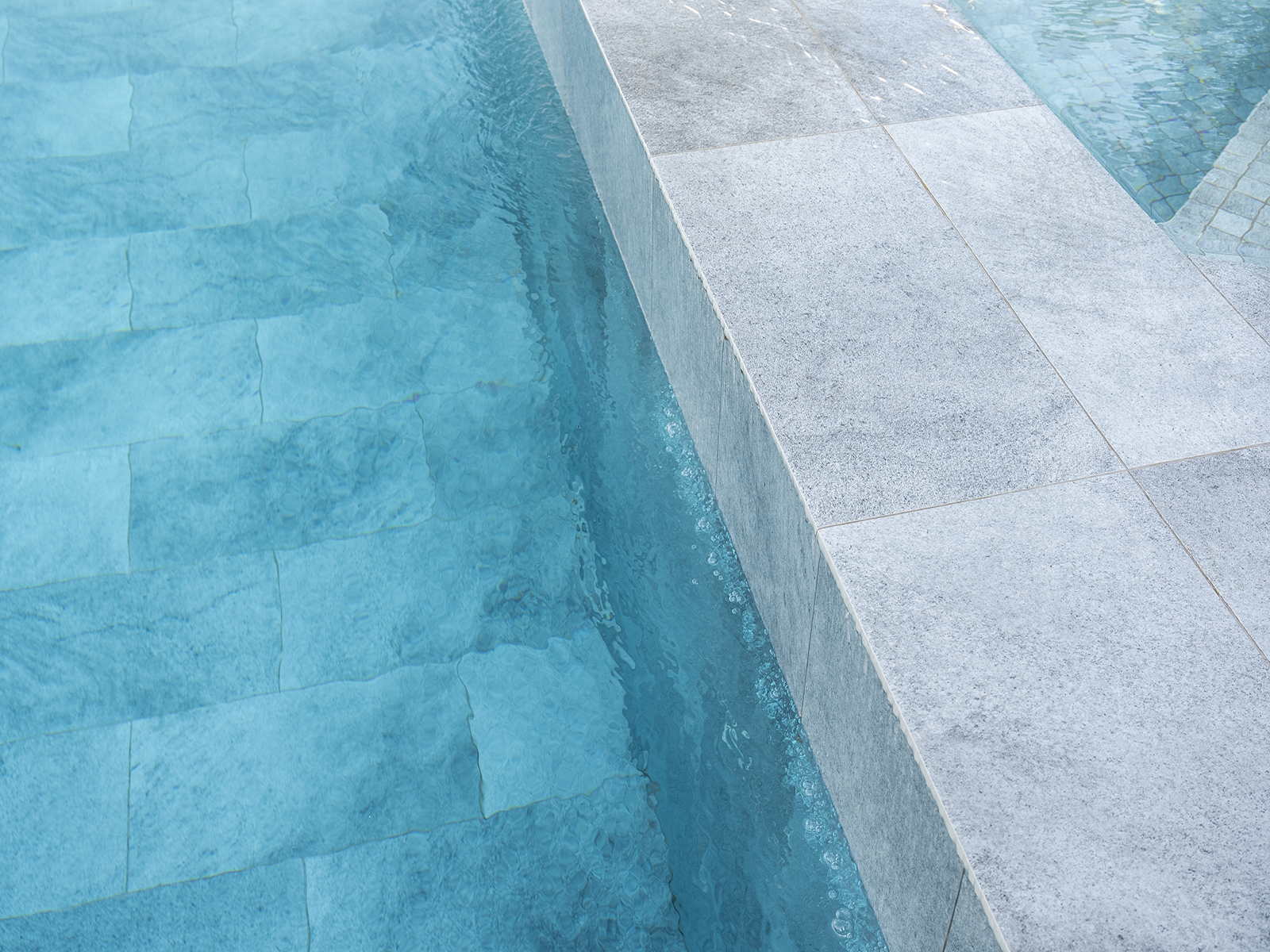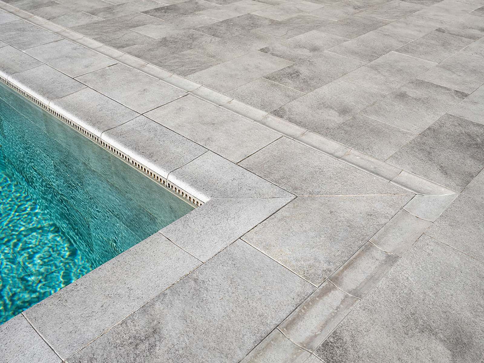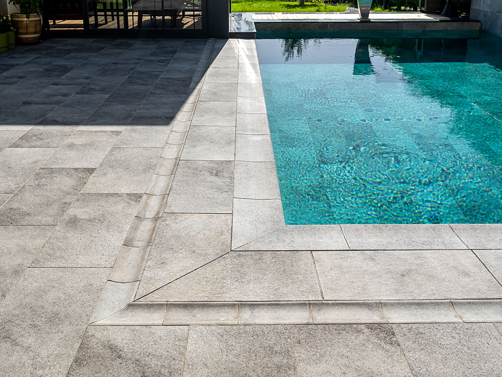 The Antique Grey Series pool tiles offer a refined surface solution that seamlessly complements both modern and classical architecture with its naturally inspired grey tones. Reminiscent of natural stone, the series blends this aesthetic appeal with the technical advantages of 100% porcelain tiles, ensuring both lasting durability and timeless elegance. Its understated yet impressive texture creates a sophisticated atmosphere, especially in outdoor settings. With a textured, anti-slip surface, it delivers a professional choice in terms of both design and safety.