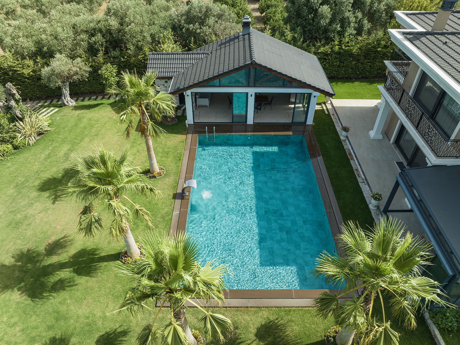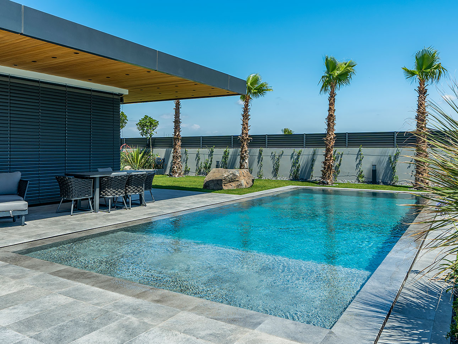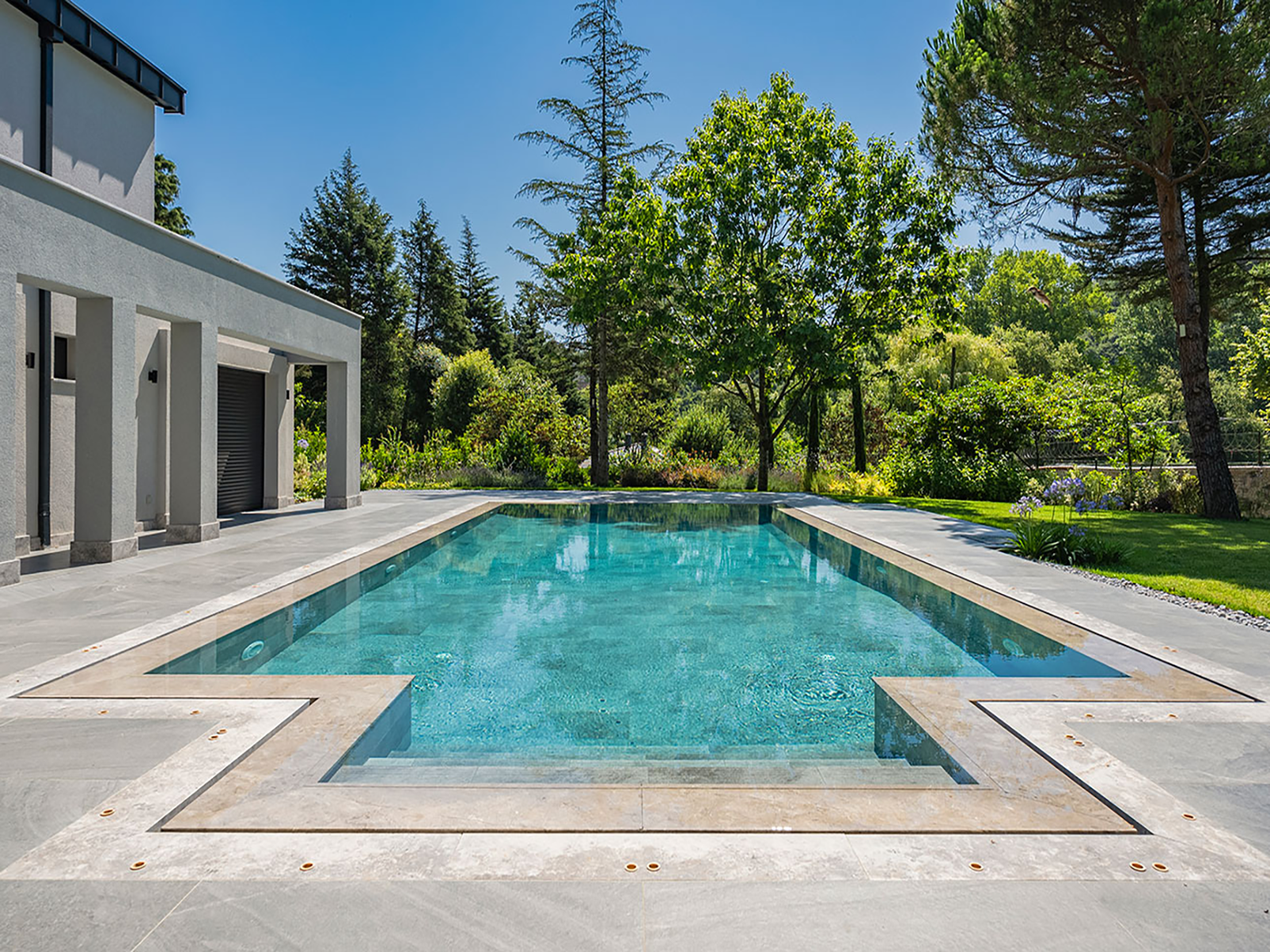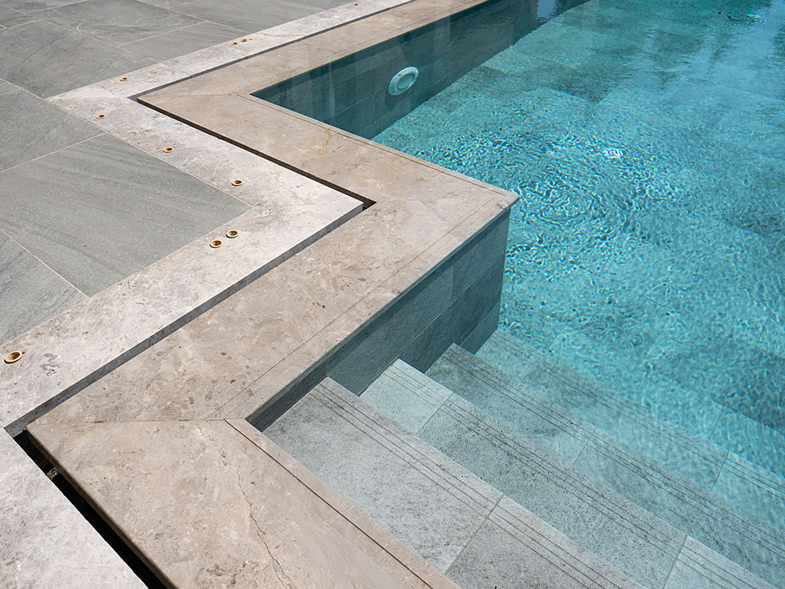 The Antique Grey Series pool tiles offer a refined surface solution that seamlessly complements both modern and classical architecture with its naturally inspired grey tones. Reminiscent of natural stone, the series blends this aesthetic appeal with the technical advantages of 100% porcelain tiles, ensuring both lasting durability and timeless elegance. Its understated yet impressive texture creates a sophisticated atmosphere, especially in outdoor settings. With a textured, anti-slip surface, it delivers a professional choice in terms of both design and safety.