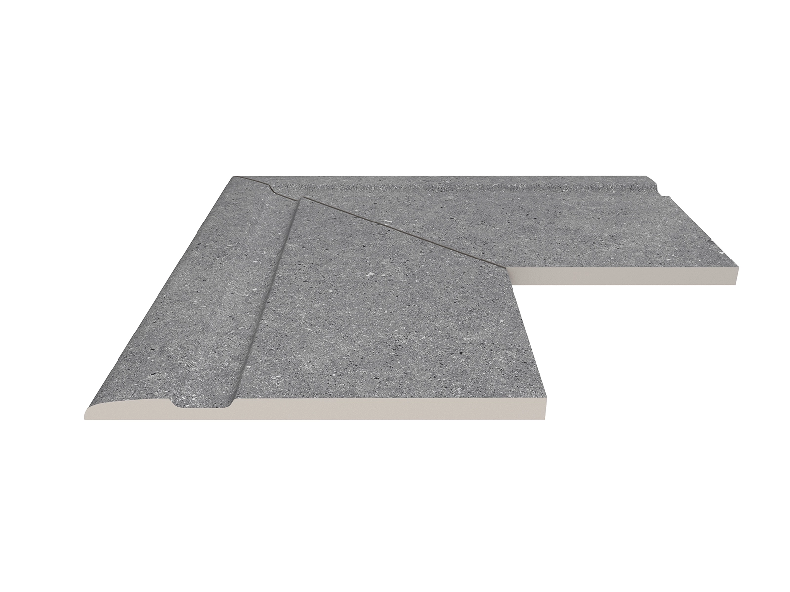 The Cement Grey pool coping is a 100% porcelain accessory that ensures both a secure grip and visual continuity around the pool perimeter. With its durable build and color harmony with the Natural Series, it offers professional solutions for contemporary pool projects.