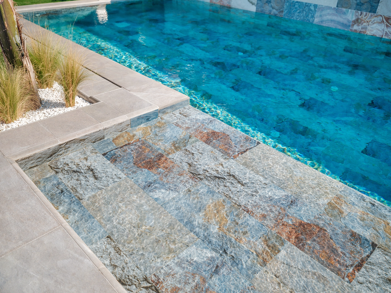 The Serastone Series pool tiles are specially developed for modern, nature-inspired pool designs that demand both visual harmony and technical durability. With soft color transitions and the textured look of natural stone, this 100% porcelain tile collection combines subtle elegance with enduring strength. Featuring clean lines and a textured, anti-slip surface, Serastone offers both style and safety, making it ideal for private residential pools as well as hotel and social facility applications.