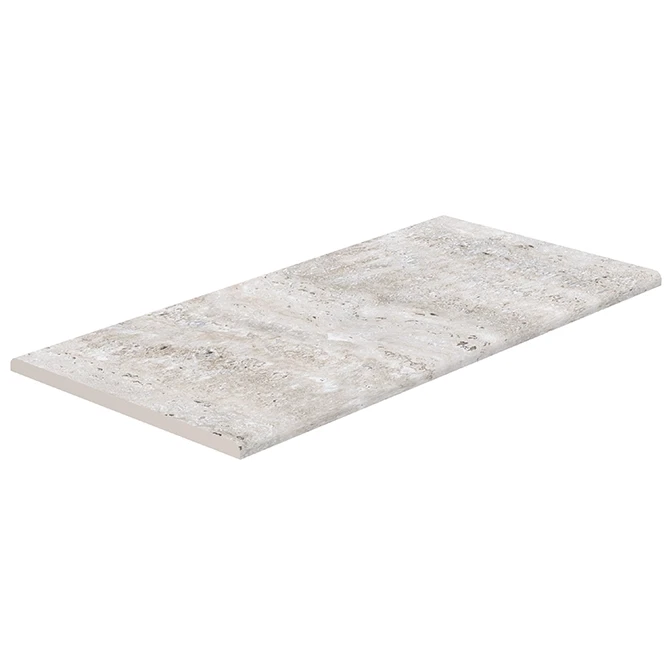 The Silver Traverten linear overflow coping is a specially engineered, epoxy mesh-backed, 100% porcelain solution for linear overflow pools. Its robust structure resists disintegration even when broken, offering both long-lasting durability and sophisticated style. Fusing grey travertine stone texture with contemporary lines, this product eliminates the need for grating in linear overflow systems—maximizing terrace space while ensuring visual unity.