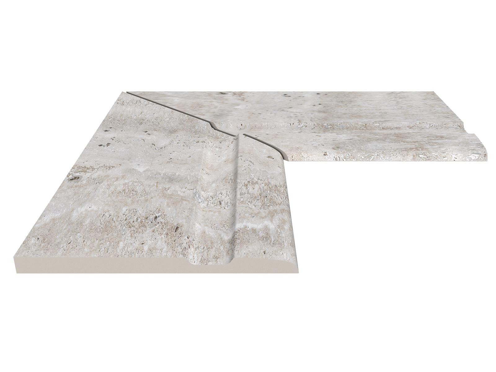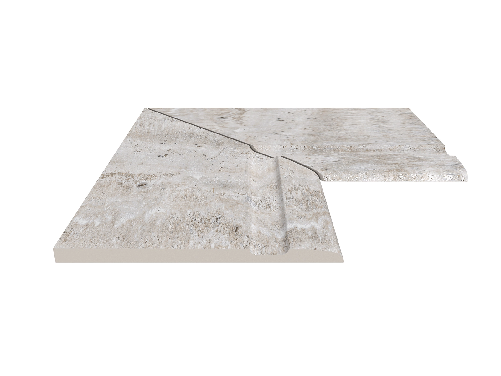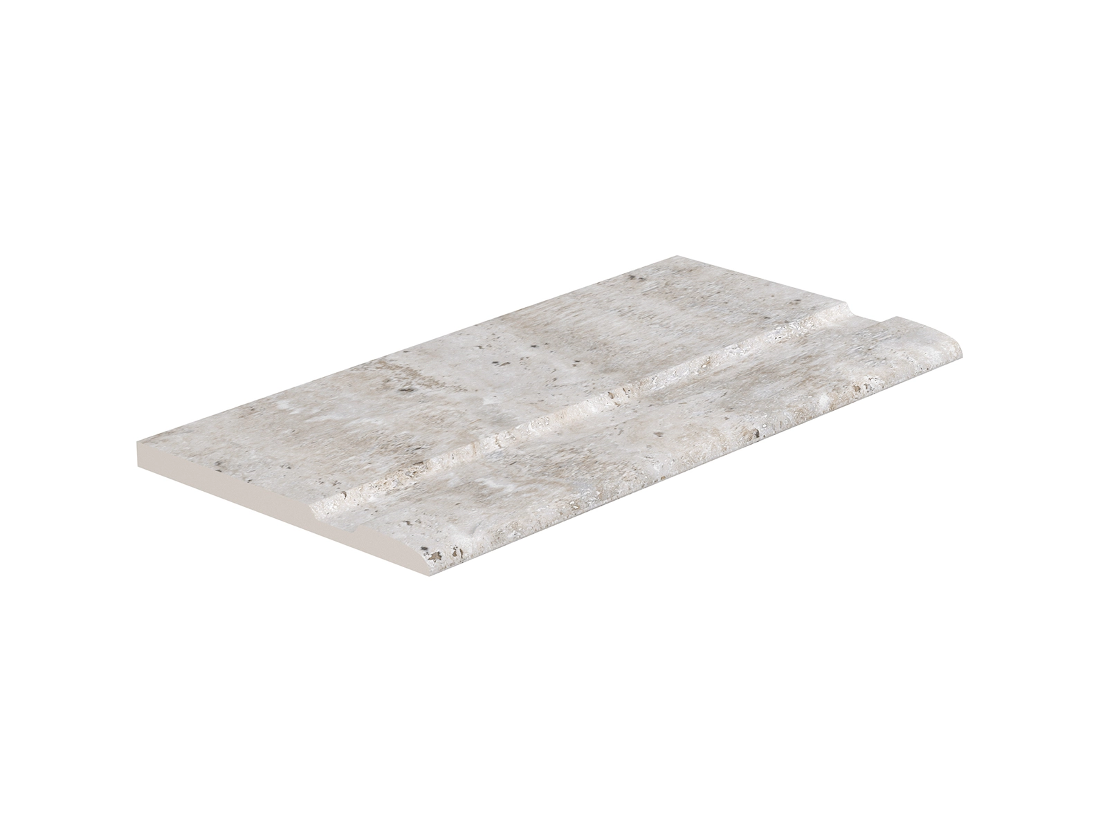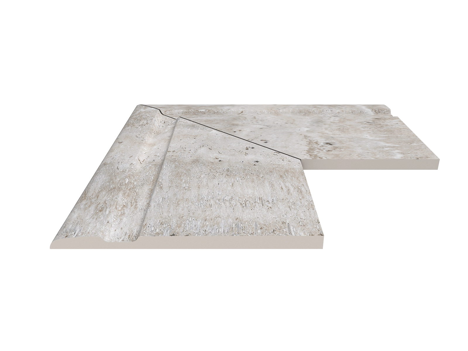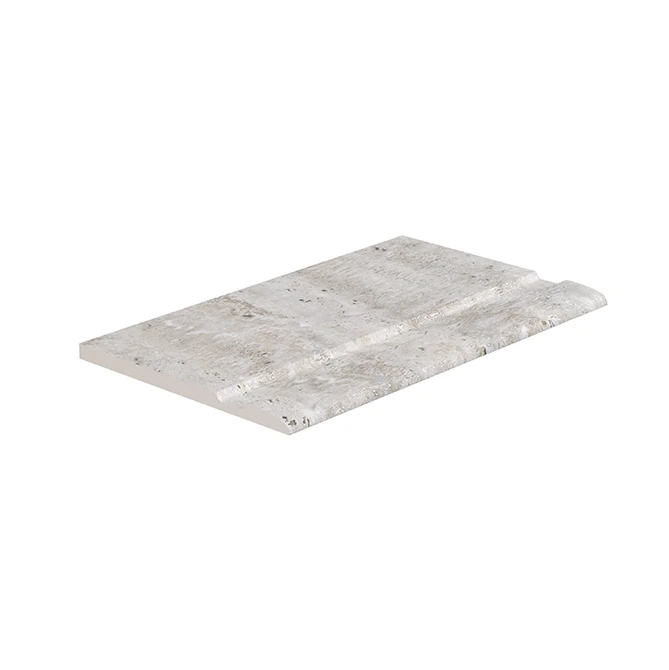 The Silver Traverten pool coping offers both aesthetic continuity and maximum safety around the poolside. Inspired by the look of grey travertine stone, this unique piece aligns seamlessly with Silver Traverten anti slip terrace tiles, creating a stylish and cohesive poolside design. Crafted from 100% porcelain, it ensures not only visual elegance but also exceptional technical performance.