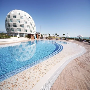 The Porcelain Anti-slip Pool Mosaics produced by Serapool with a 100% porcelain body are an ideal choice for pool designs that demand both elegance and safety. Their refined and understated form blends seamlessly with both classic and contemporary pool projects. With their Anti-slip Finish, they enhance safety on wet surfaces, while their structural strength ensures long-lasting performance. Compared to glass or Ceramic Tiles, porcelain anti-slip mosaics deliver superior durability, making them a reliable solution for high-traffic areas.