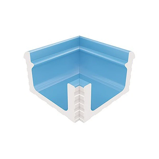 The profiled outer corner pool channel is a specialized solution designed for outer corner transitions in top overflow pools. With its integrated coping profile, it eliminates the need for a separate coping piece, ensuring a seamless and hygienic application. It directs overflowing water through designated lines, preventing surface puddling and reducing slipping hazards around the pool.
