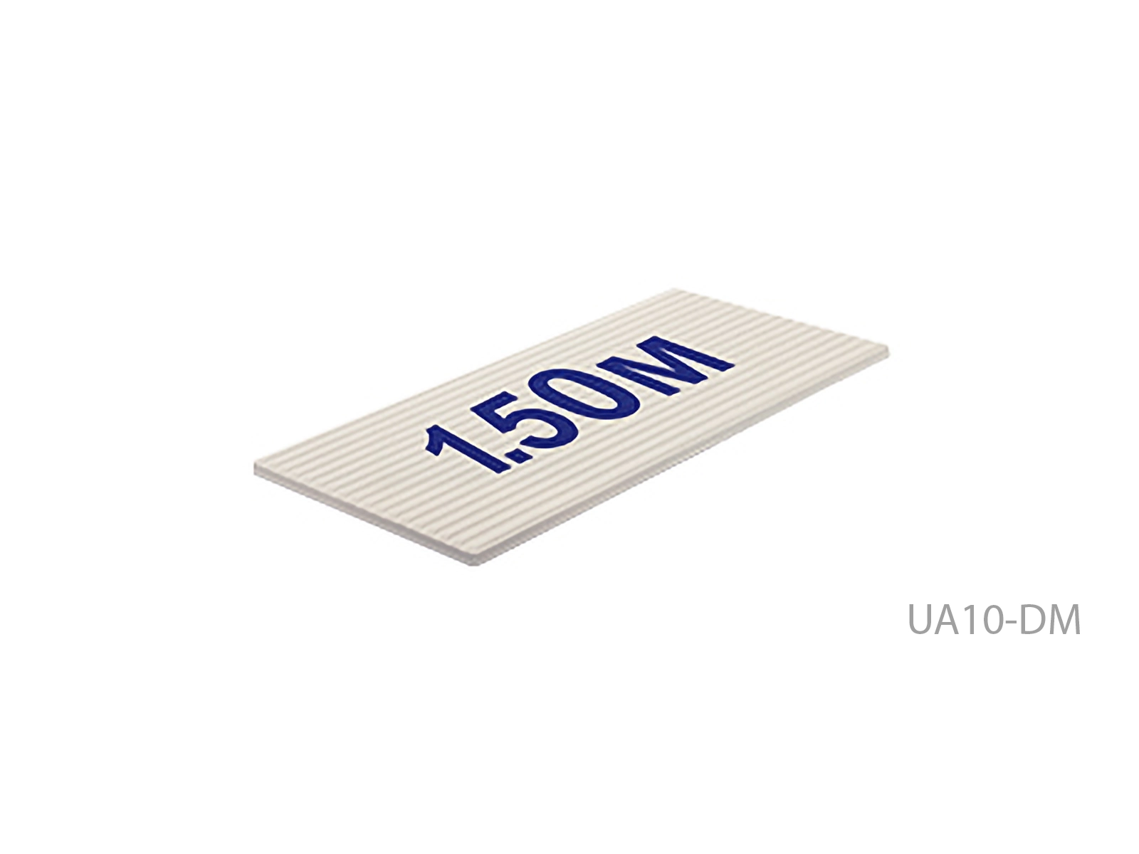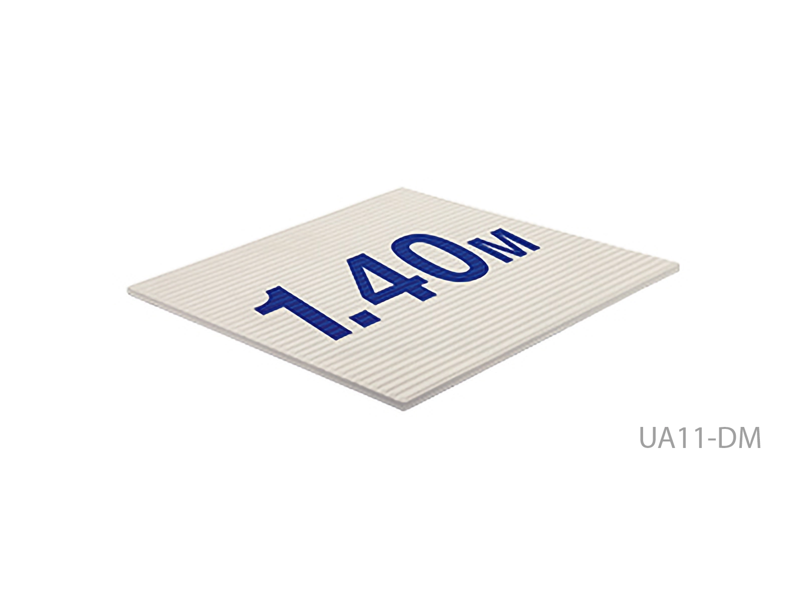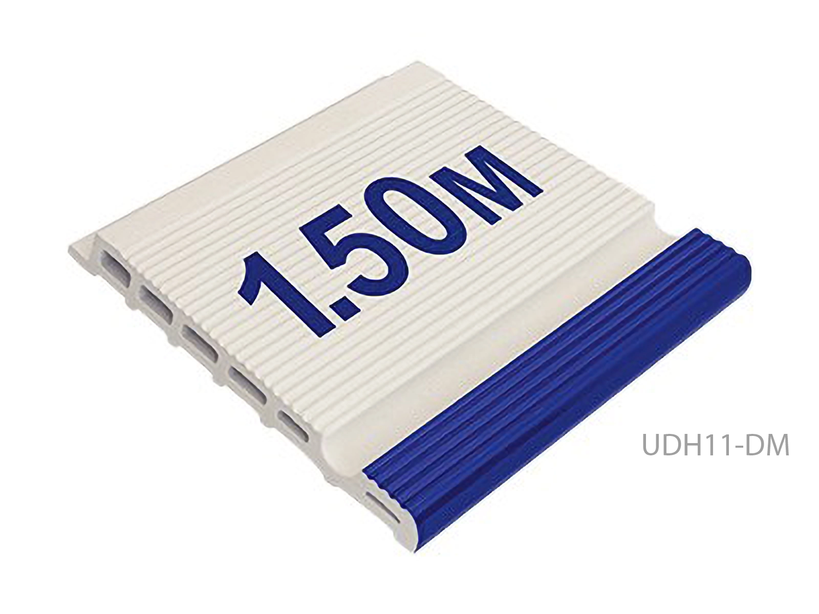 Universal series pool copings with depth markings are special porcelain tiles designed for informational and warning purposes along the pool edge. These tiles can be used to indicate pool depth texts, directional signage, and safety warnings at poolside areas.