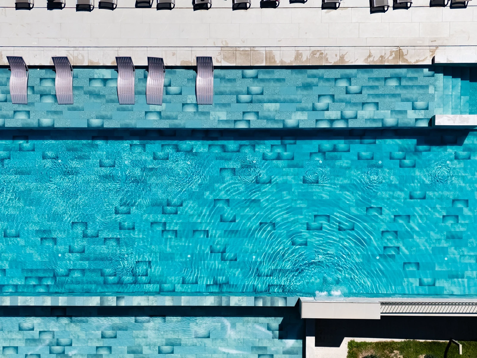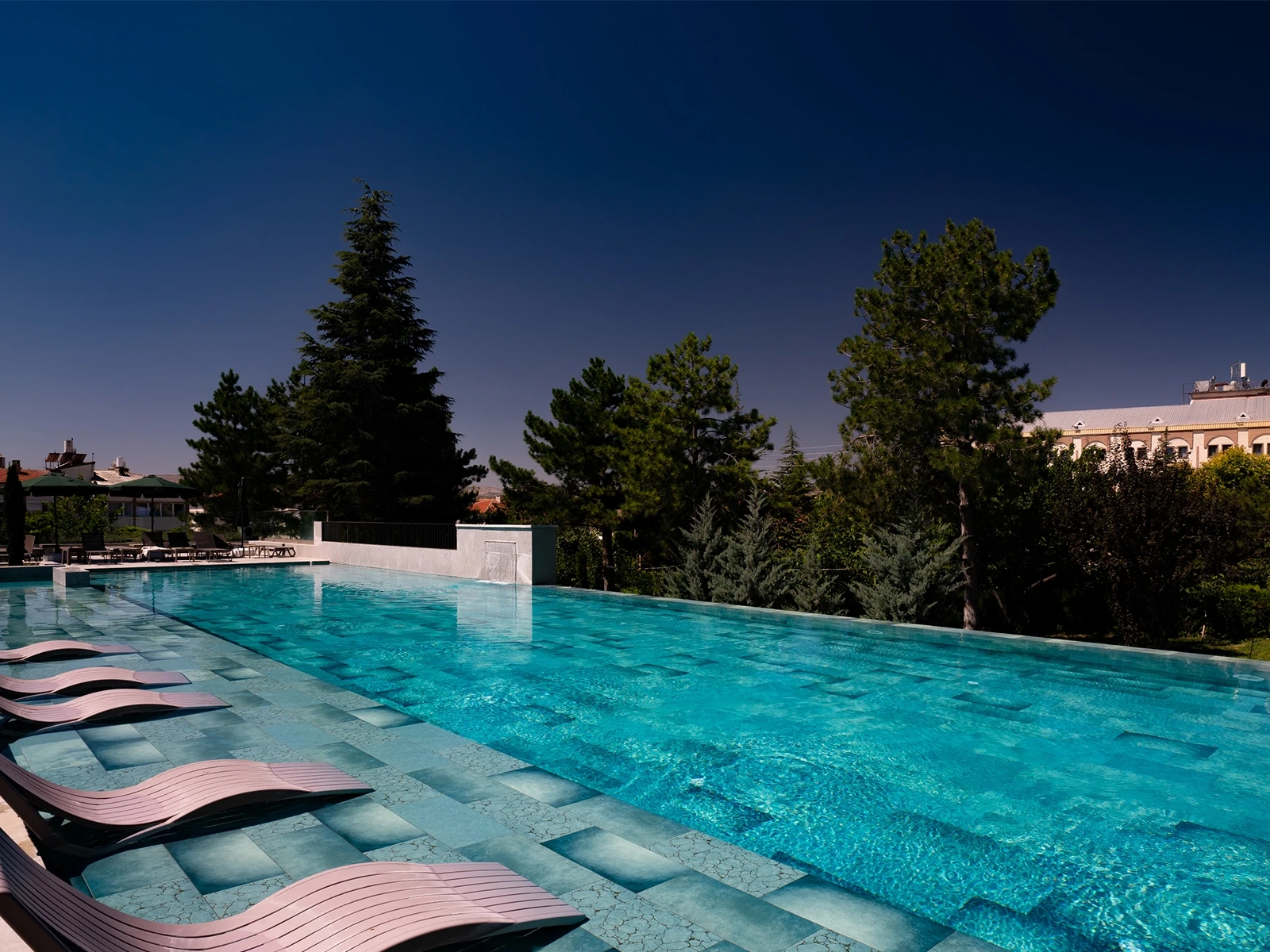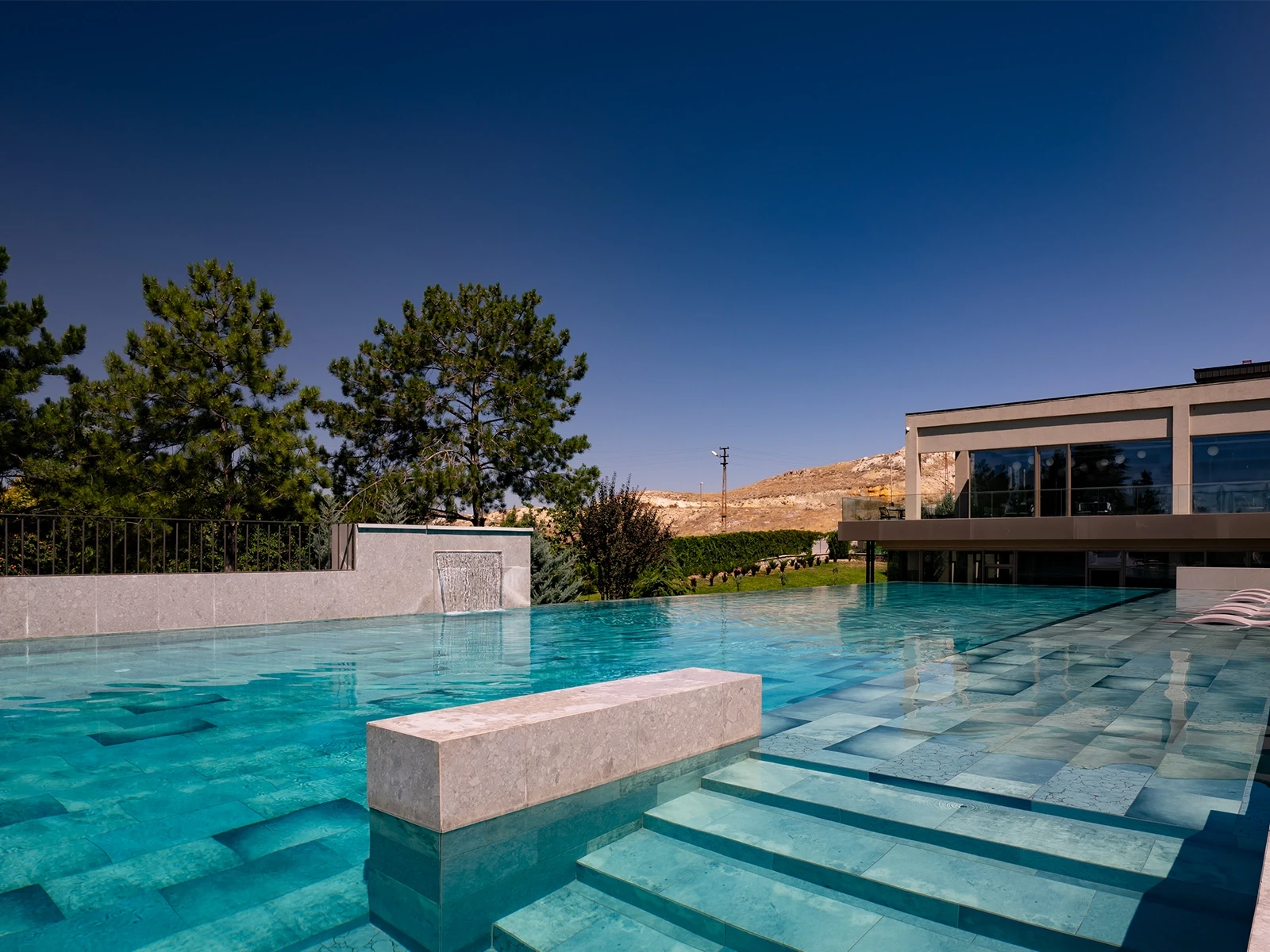 The pool project at Mustafa Cappadocia Resort features the Blue Bead Series. The vibrant blue tones of the 100% Porcelain Pool Tiles give the hotel’s pool a striking visual appeal. With the 9-face technique, the varying shades of blue tiles add depth and detail to the pool’s design. Thanks to its 100% porcelain structure, the Blue Bead series ensures long-lasting durability, while its PTV ≥ 45° Anti-slip surface places Safety at the forefront.