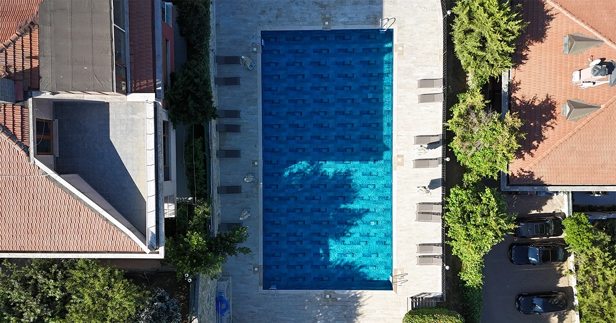 The outdoor pool of Boğazkent Residences is clad with the energetic blue tones of the Blue Bead Series, creating a modern and dynamic effect on the water’s surface. Harmonizing seamlessly with the surrounding natural stone textures and green landscape, this pool tile series offers users an exceptional experience both aesthetically and technically. With its 100% porcelain structure, the surface is resistant to chemicals and UV rays, ensuring long-lasting use. Featuring a water absorption rate below 0.5%, the tile stands out with its high strength, while its slip resistance value of PTV ≥ 45° provides safe use even on wet surfaces.