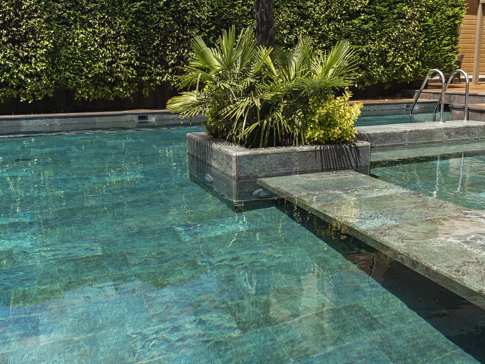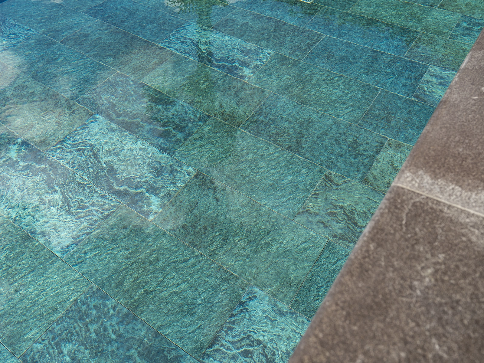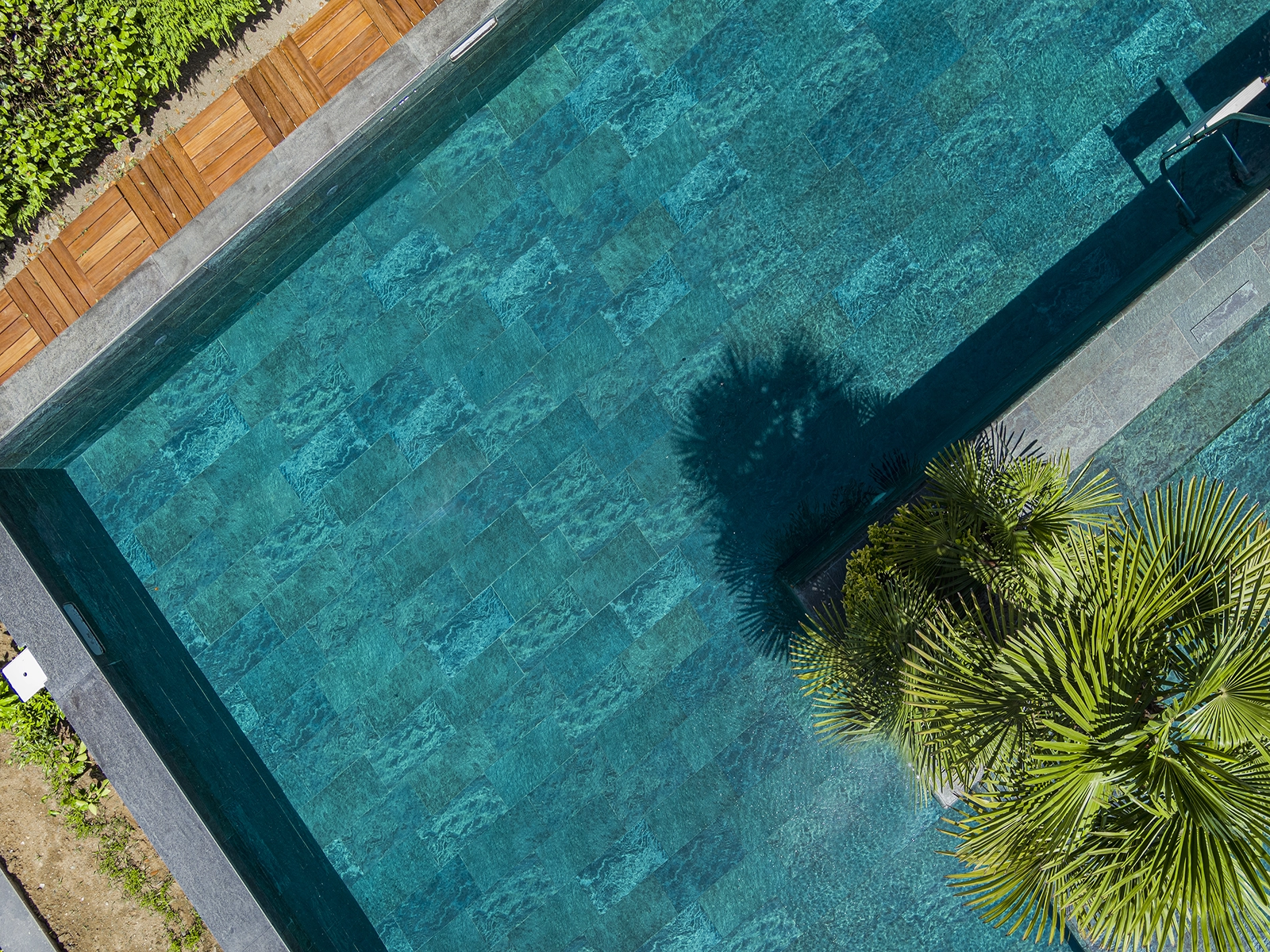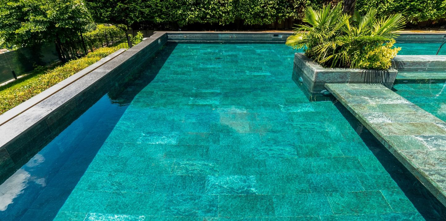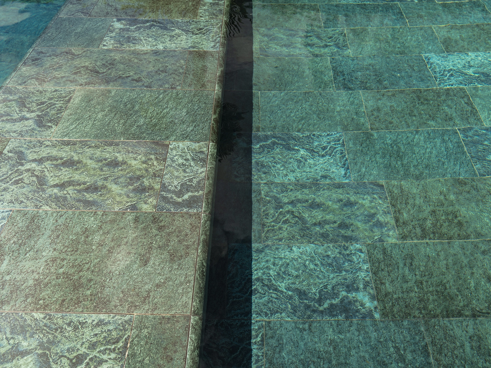 Located in Acarkent, one of Istanbul’s most prestigious residential areas, this private housing project blends contemporary architecture with Serapool’s natural stone-textured porcelain tiles. The Verde Guatemala series enriches the pool area with deep green tones, adding visual depth and a nature-inspired ambiance. With its 100% porcelain composition, the tiles feature a water absorption rate below 0.5%, ensuring long-term durability. The surface offers high resistance to UV rays, chemicals, and thermal shocks, while the PTV ≥ 45° anti-slip rating ensures maximum safety in wet zones. The Verde Guatemala outer trim provides seamless edge transitions, combining visual continuity with functional comfort.