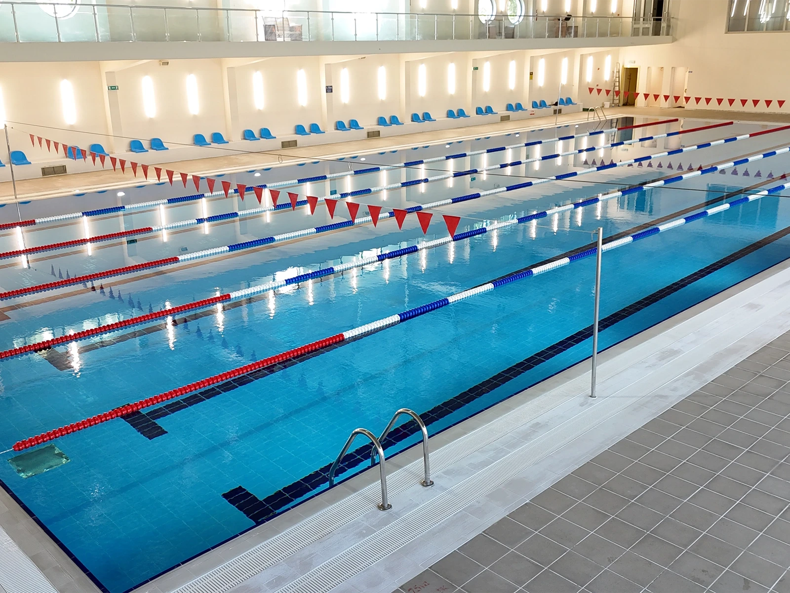 The semi-Olympic swimming pool at Boğaziçi University Hisar Campus Indoor Sports Hall was designed with solutions that combine functionality and aesthetic harmony. In the project, Serapool Olympic Series Porcelain Pool Tiles were used, meeting international FINA standards both in material and technical details, while also completing the project with their color range. On the edges of the Olympic pool, Universal Series Anti Slip Tiles and Pool Copings were applied. The Anti Slip Tiles ensured safety in wet areas, while the copings, with their ergonomic design, provided comfort for athletes inside the pool. To control the flow of overflow water, PVC profile gratings, stainless steel reinforced ABS gratings, and corner solutions were chosen as complementary products. These elements contributed to hygiene around the pool environment. With its internationally compliant equipment, the Olympic pool was conceived not only as a training space but also as a safe and reliable environment for athletes to perform.