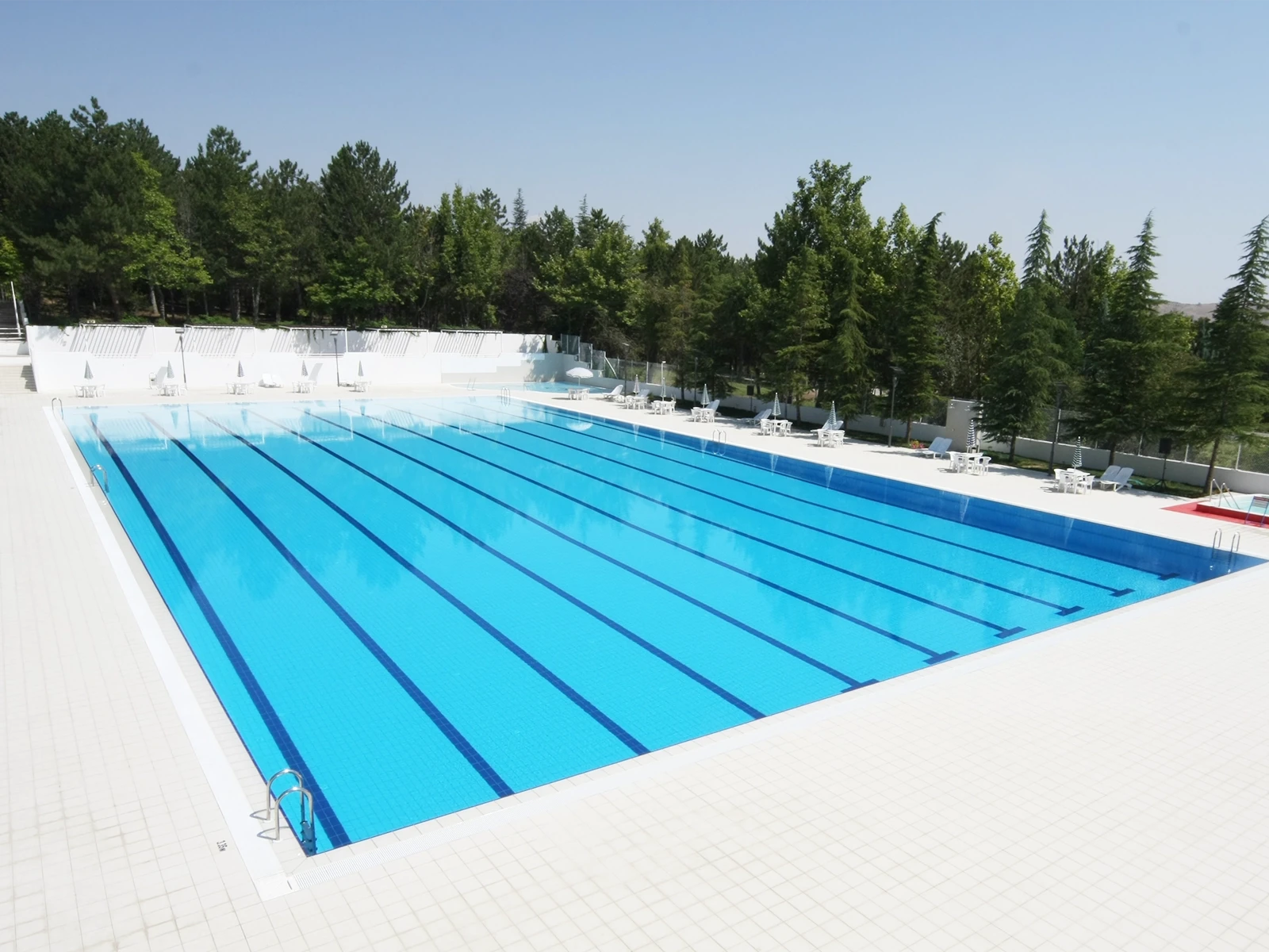 The 10-lane Olympic swimming pool at Tüpraş Social Facilities, built in compliance with FINA standards, offers the necessary infrastructure for professional competitions with its precise dimensions and technical details. The Olympic Series Porcelain Tiles, applied across all pool surfaces, provide a reliable flooring solution suitable for intensive use, thanks to their low water absorption rate (below 0.5%) and frost resistance. Their minimal joint structure enhances hygiene, while a variety of color options meet all needs, from lane markings to depth indicators. Around the pool, the flexible-sized Petit Carre Copings Olympic Pool Coping ensures maximum efficiency with a single product. Unlike traditional applications that require one coping and two Anti Slip Tiles, this solution, with its dual-sided non-slip feature, guarantees safe movement both inside and outside the pool. With a slip resistance value of PTV ≥ 55°, it enhances safety on wet surfaces and supports hygiene through reduced joint application. Resistant to UV rays, chemicals, and frost, this system promises long-lasting performance, uniting aesthetics with functionality to deliver an Olympic-level swimming experience.