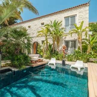 Antique Grey & Pool Garden Grey Çeşme Villa Pool Project