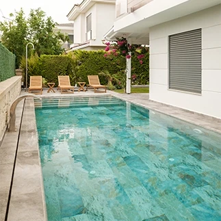 Located in one of Bodrum, Muğla’s most prestigious residential areas, this villa enhances its architectural elegance with Serapool’s natural stone-textured porcelain solutions. The Cotto anti slip terrace tiles chosen for the flooring bring warmth and refined simplicity to the outdoor space through earthy tones and a matte finish. Thanks to a low water absorption rate below 0.5%, the product maintains its durability for years. It also offers high resistance to UV rays, chemical exposure and thermal shocks. With a slip resistance value of PTV ≥ 45°, the surface ensures maximum safety in wet areas. This application delivers not only a premium swimming area but also a comprehensive outdoor experience, enriched with luxury, comfort and safety.