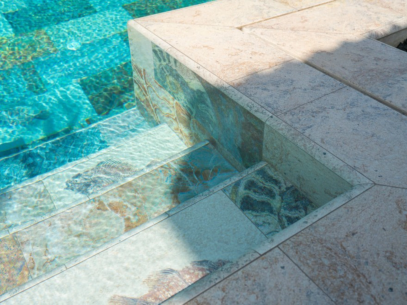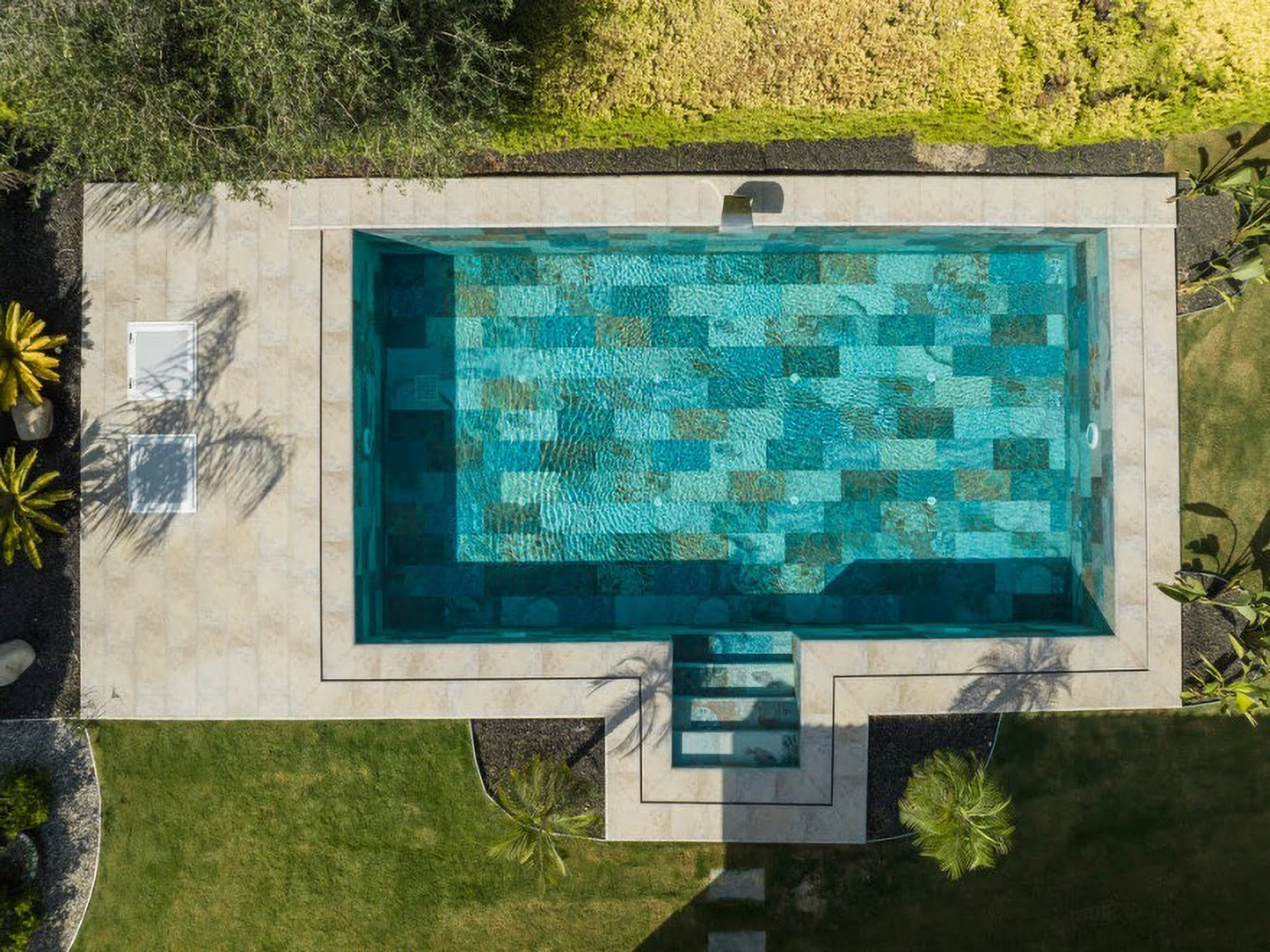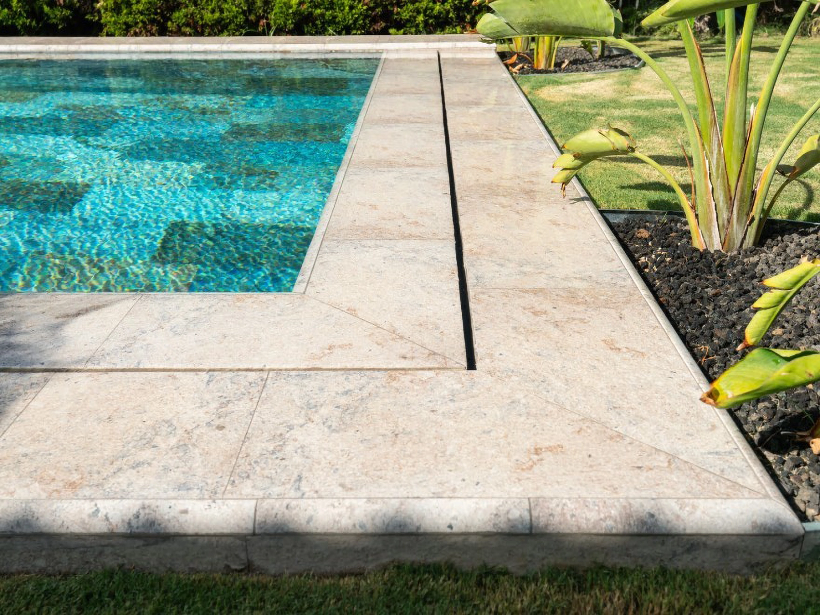 Located in İzmir’s Çeşme district, this villa project combines contemporary architecture with the exclusive aesthetic of Serapool porcelain. The Fossil Mix Series infuses the swimming area with sophisticated texture and warm ambiance, thanks to its nature-inspired beige and stone tones. The natural stone feel enhances the integration with the outdoor space, elevating the overall value of the setting. Made from 100% porcelain, the tiles feature a water absorption rate below 0.5%, ensuring long-term durability. The surfaces are highly resistant to UV rays, chemicals, and thermal shock, making them ideal for outdoor conditions. A PTV ≥ 45° anti-slip rating ensures advanced safety in wet areas. Fossil Mix outer trim pool copings offer seamless transitions along the edges, reinforcing both comfort and a luxurious visual impression. More than a swimming area, this application reflects a complete luxury lifestyle by integrating design elegance, structural safety, and refined comfort.