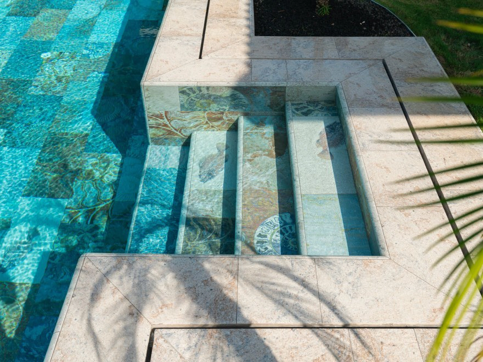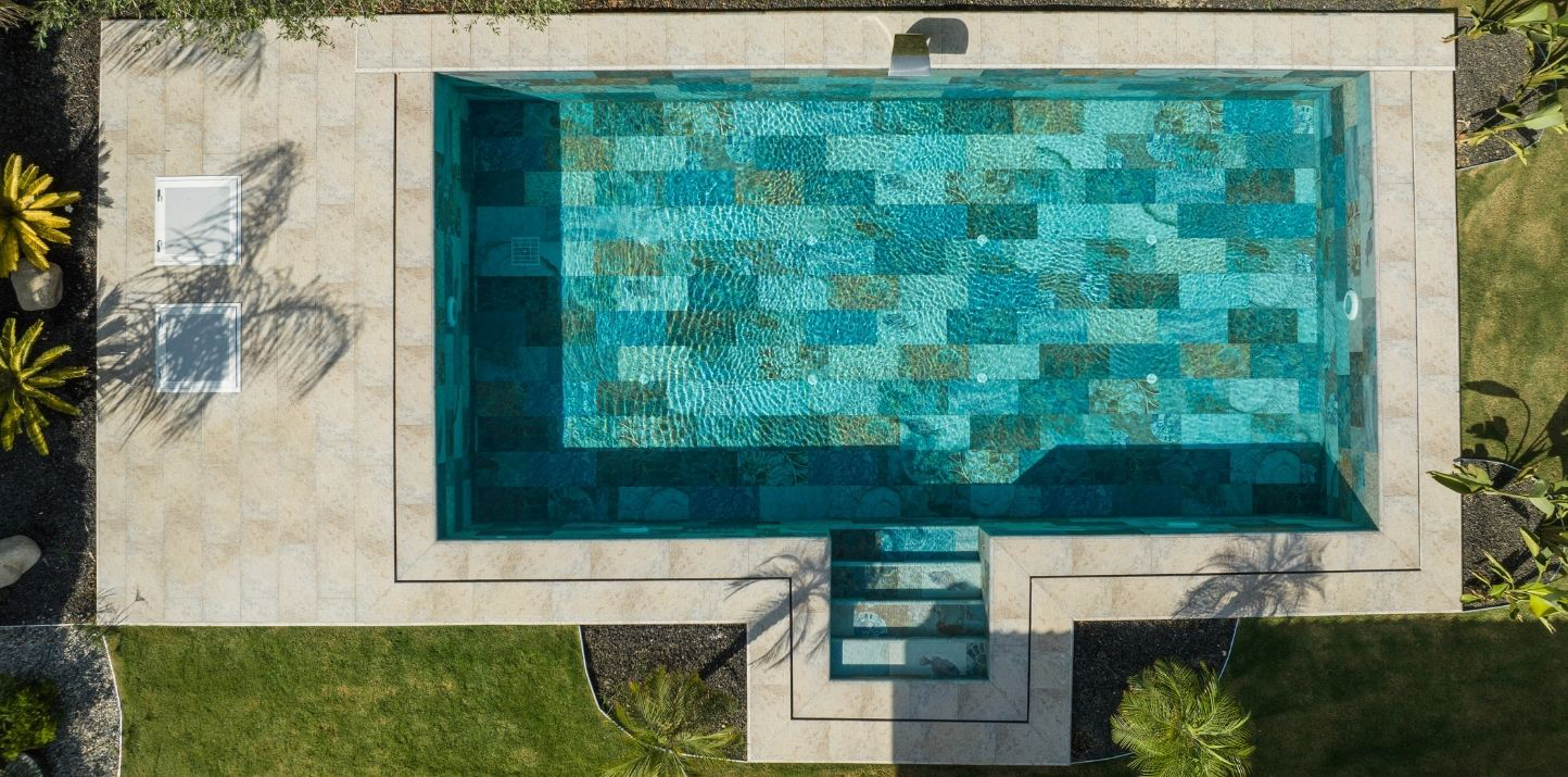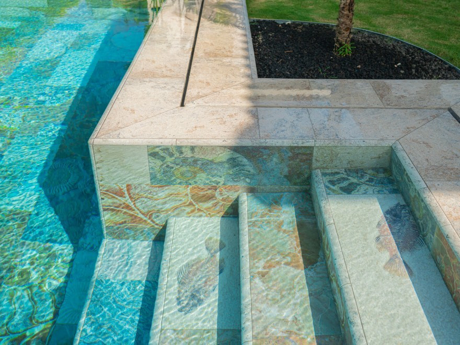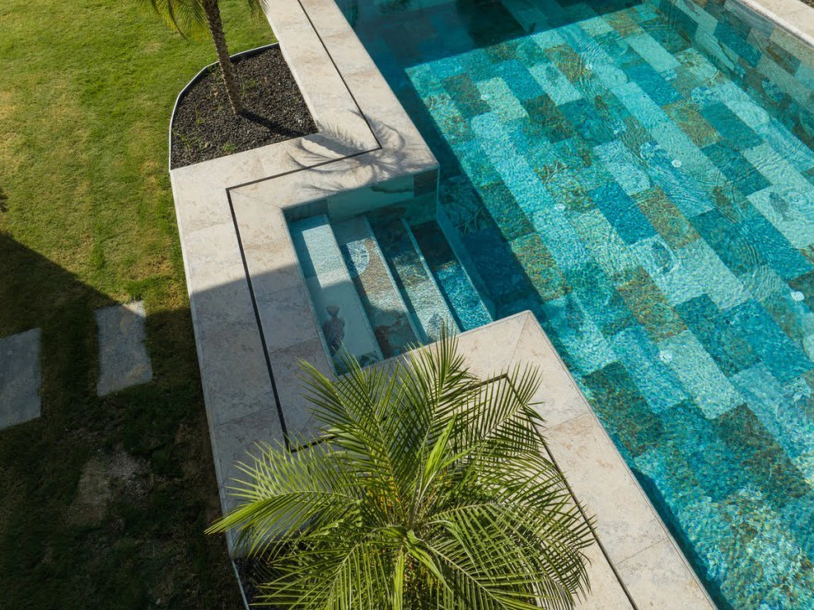 Located in İzmir’s Çeşme district, this villa project combines contemporary architecture with the exclusive aesthetic of Serapool porcelain. The Fossil Mix Series infuses the swimming area with sophisticated texture and warm ambiance, thanks to its nature-inspired beige and stone tones. The natural stone feel enhances the integration with the outdoor space, elevating the overall value of the setting. Made from 100% porcelain, the tiles feature a water absorption rate below 0.5%, ensuring long-term durability. The surfaces are highly resistant to UV rays, chemicals, and thermal shock, making them ideal for outdoor conditions. A PTV ≥ 45° anti-slip rating ensures advanced safety in wet areas. Fossil Mix outer trim pool copings offer seamless transitions along the edges, reinforcing both comfort and a luxurious visual impression. More than a swimming area, this application reflects a complete luxury lifestyle by integrating design elegance, structural safety, and refined comfort.