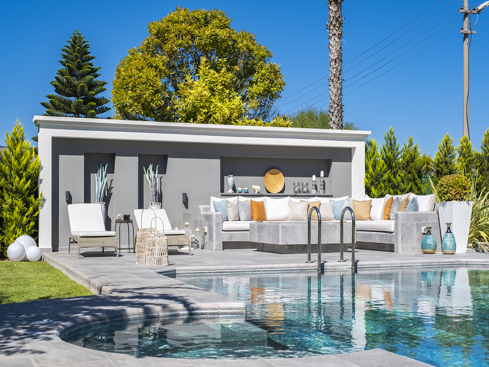 Antique Grey & Pool Garden Grey Çeşme Villa Pool Project