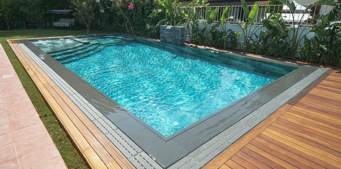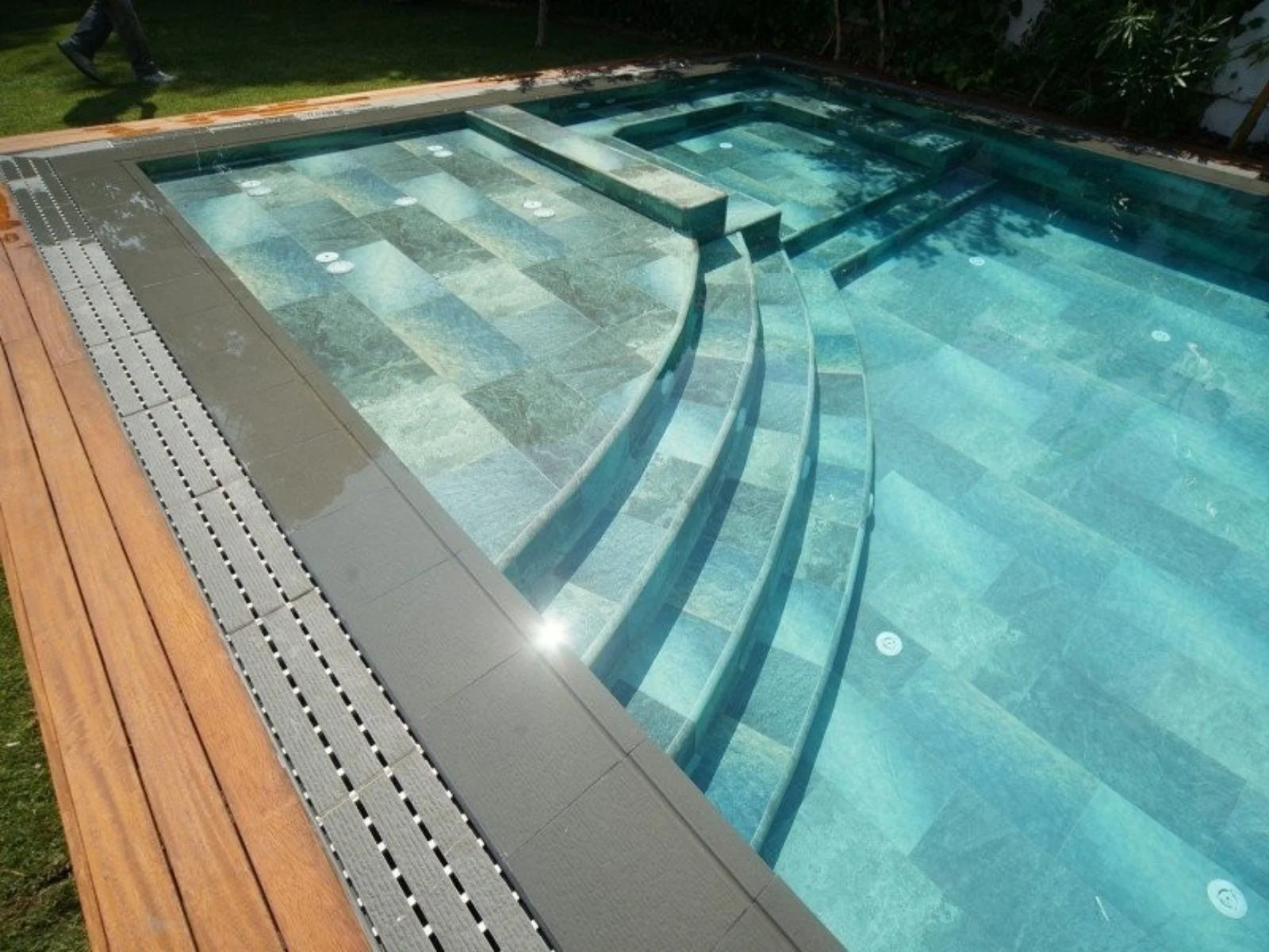 This villa pool project, realized in İzmir, harmonizes architectural minimalism with Serapool’s holistic design philosophy. The Olcay Mix Series reflects the natural essence of water through elegant shades of blue and earth tones, shaping the atmosphere with tranquil depth. The Apache pool coping and Apache porcelain pool grate enhance surface integrity, offering both visual balance and functional design along the poolside. With a water absorption rate below 0.5%, all products ensure long-term durability and maintain high resistance against UV rays, chemicals, and thermal shock. The PTV ≥ 45° slip resistance provides safe usage in wet areas. This design goes beyond a simple swimming experience—delivering a seamless blend of aesthetic perception, safety assurance, and comfort, redefining the standards of luxury living.