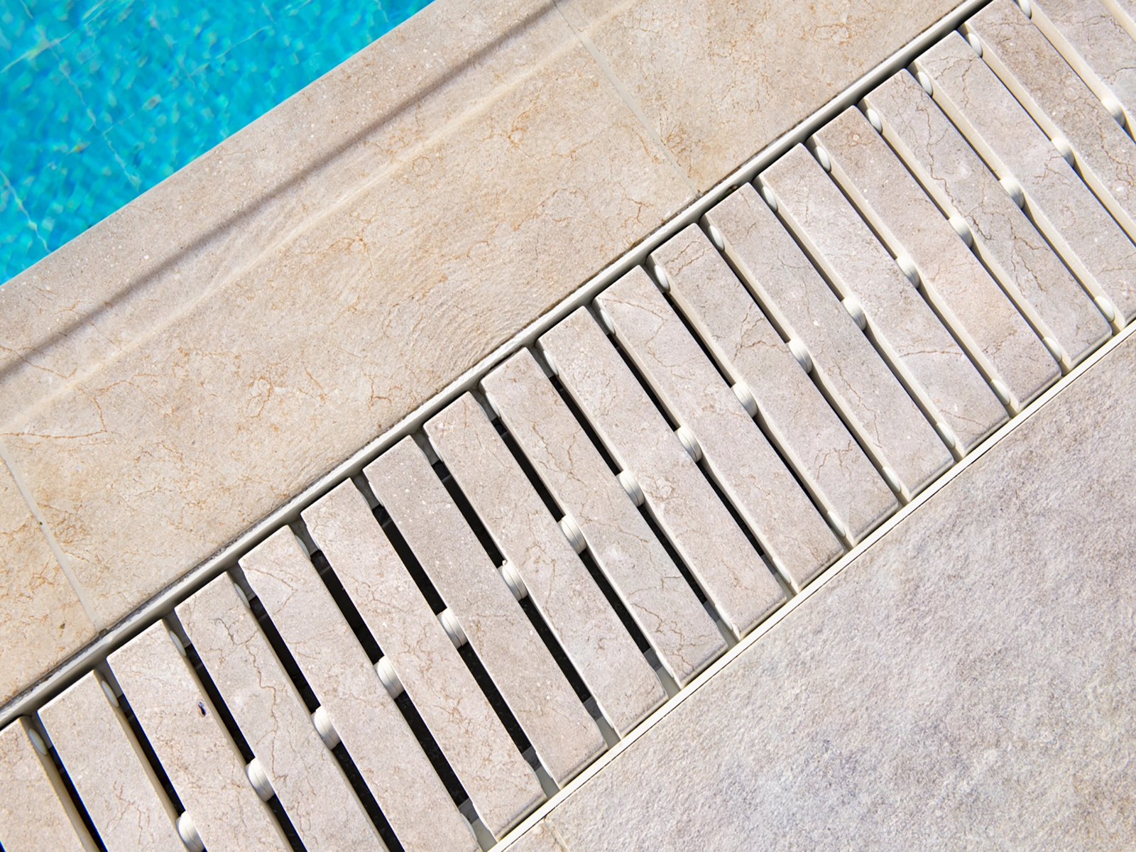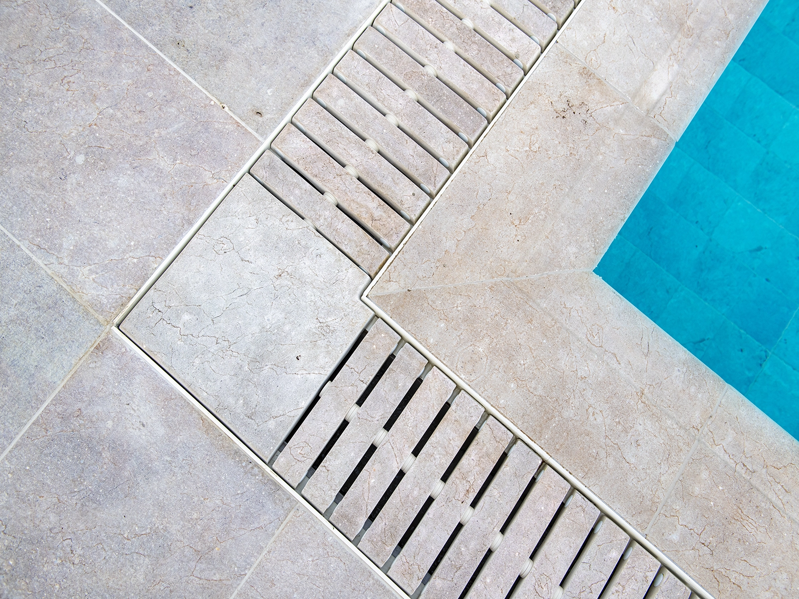 Located in Antalya this villa blends modern architecture with Serapool’s natural stone-textured porcelain solutions. The Piazza Cyan series used on the pool floor brings a refreshing and sophisticated atmosphere to the water through the harmonious fusion of blue and green tones. With a low water absorption rate below 0.5%, the tiles ensure long-lasting performance and exhibit strong resistance to UV rays, chemical exposure and thermal shock. The surface, with a slip resistance value of PTV ≥ 45°, enhances safety in wet areas. Natural Mocha anti slip terrace tiles, along with coping and flex grate components, offer both aesthetic appeal and functional transition in edge zones. This application reflects a luxurious lifestyle by uniting aesthetics, safety and comfort—not just a swimming experience.