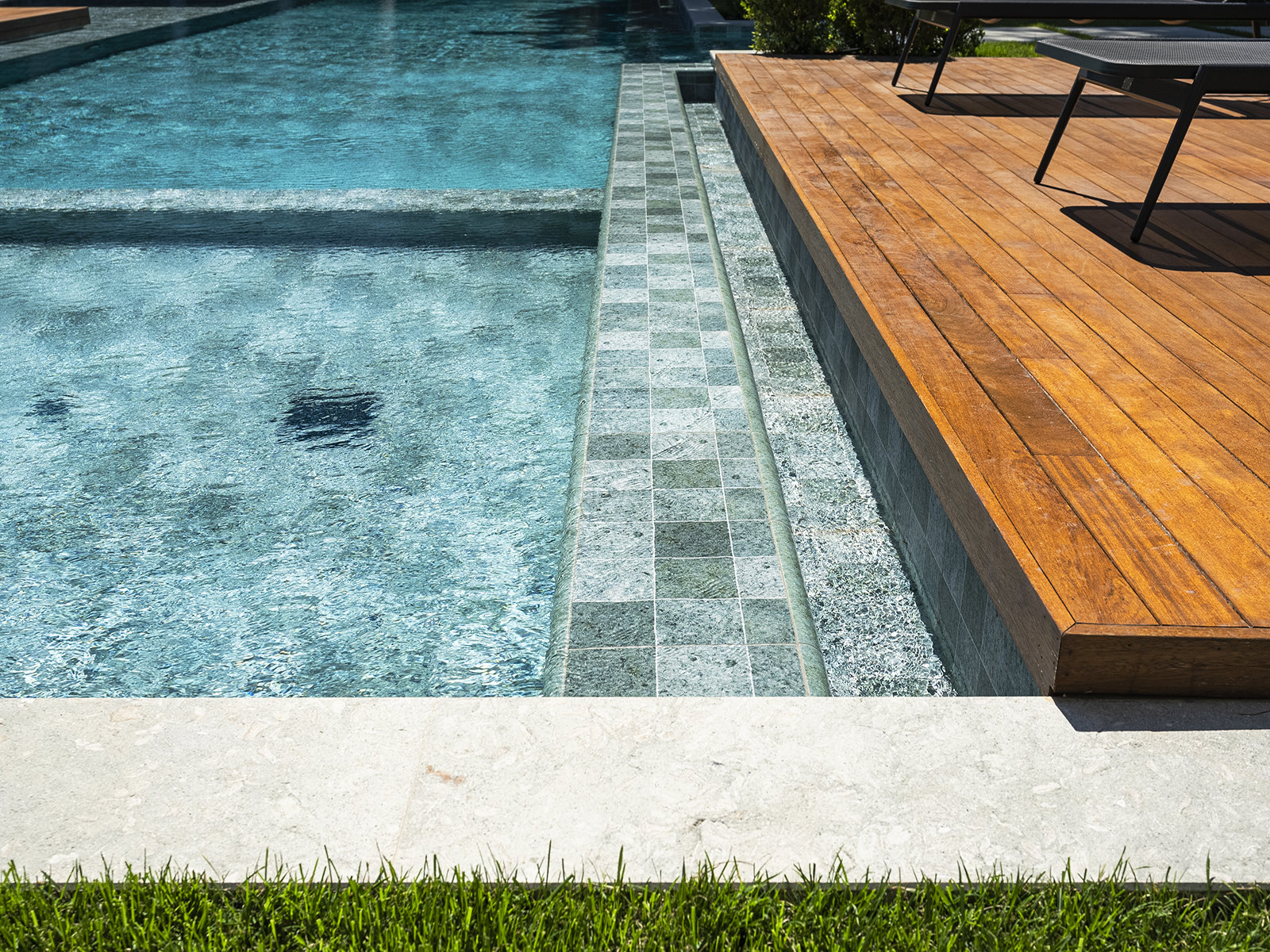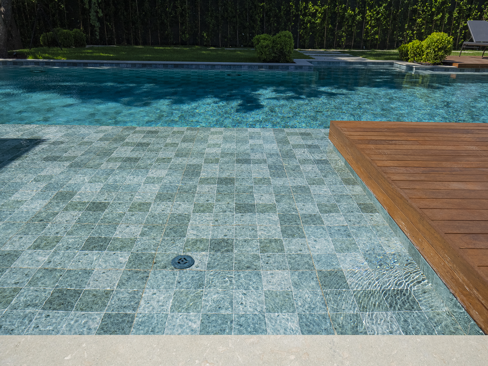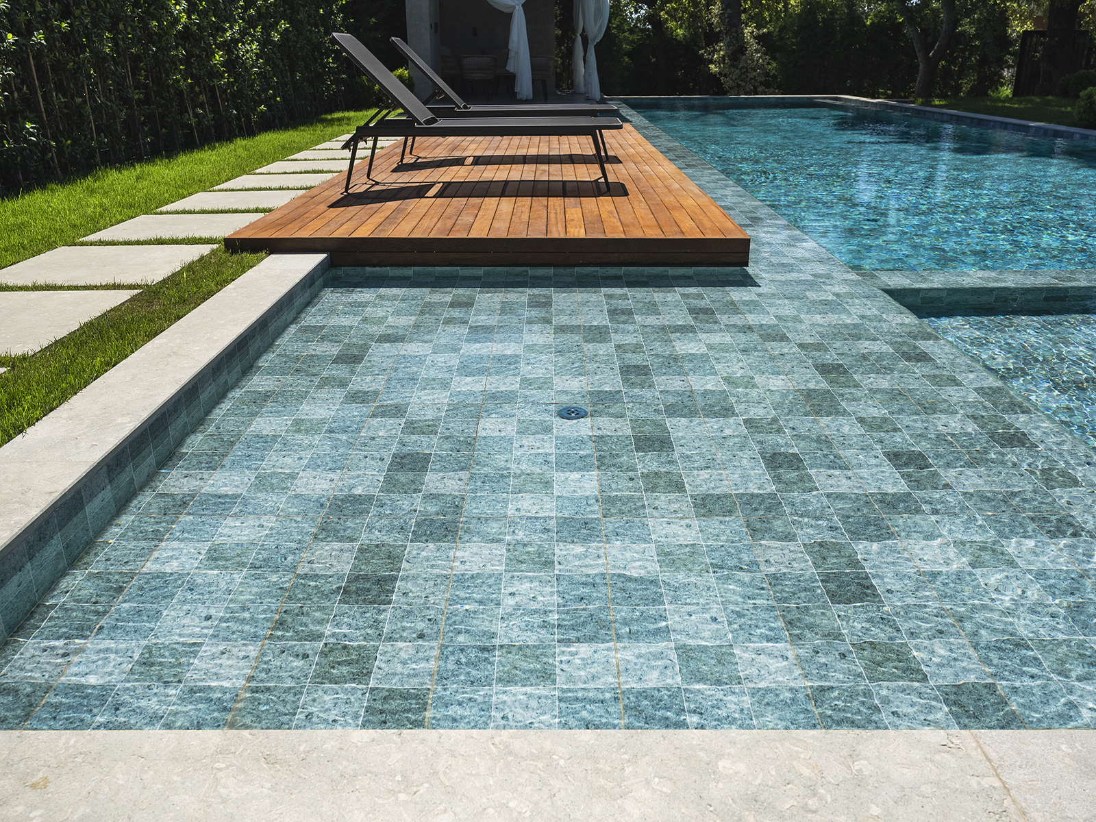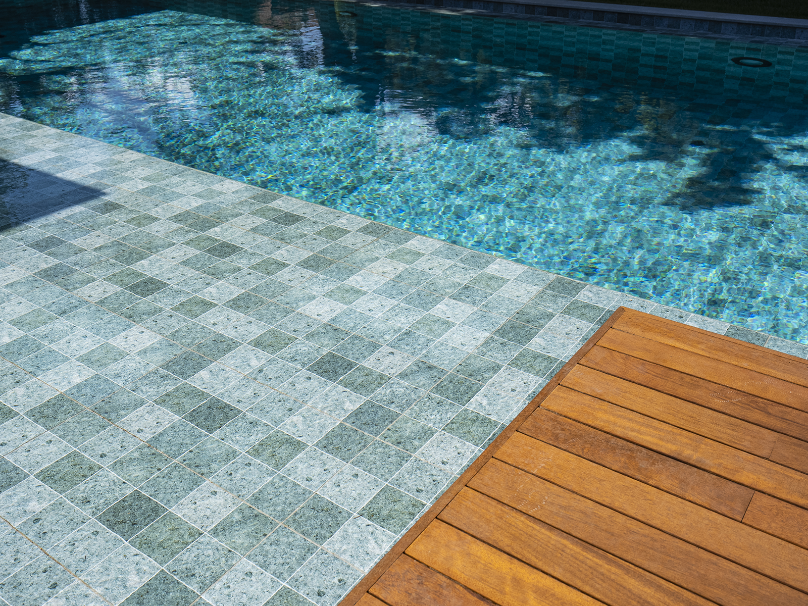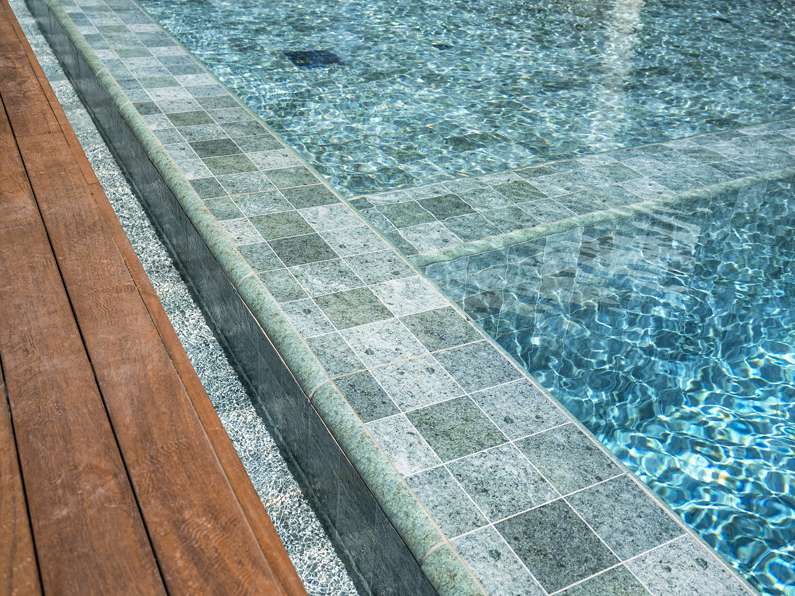 Located in Istanbul, this distinguished villa project merges contemporary architectural design with Serapool’s natural-look porcelain solutions. The Sukabumi series, with its sophisticated green tones and natural stone texture, lends an exotic depth to the water, creating a serene and nature-harmonized atmosphere. Manufactured with 100% porcelain, the tiles offer a water absorption rate below 0.5%, ensuring long-lasting performance. They also provide high resistance to UV rays, chemical exposure, and thermal shocks. With a PTV ≥ 45° anti-slip rating, the surfaces deliver maximum safety in wet areas. The Sukabumi outer trim, Scoth outer corner, and outer angle corner offer both aesthetic cohesion and functional comfort at transitional zones.