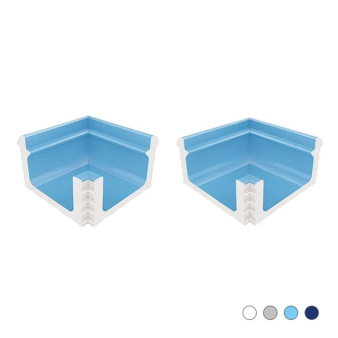 Canal Perfilado en Esquina Interior para Piscinas es una pieza especial que completa las uniones de esquina en piscinas con desbordamiento superior de forma estética y funcional. Gracias a su estructura perfilada integrada, no requiere la aplicación de un asa adicional. Su forma de una sola pieza aumenta la impermeabilidad y evacua de manera controlada el agua desbordada desde la superficie mediante un diseño canalizado dirigido.