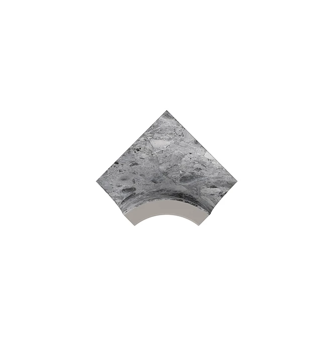Relax Ceppo Terrazzo Grey Esquina cantonera interior es un elemento porcelánico semicircular utilizado en las intersecciones de esquina interior en el suelo de la piscina como continuación de las piezas cóncavas. Crea transiciones suaves entre el suelo y la pared, ofreciendo una solución complementaria tanto estética como segura.