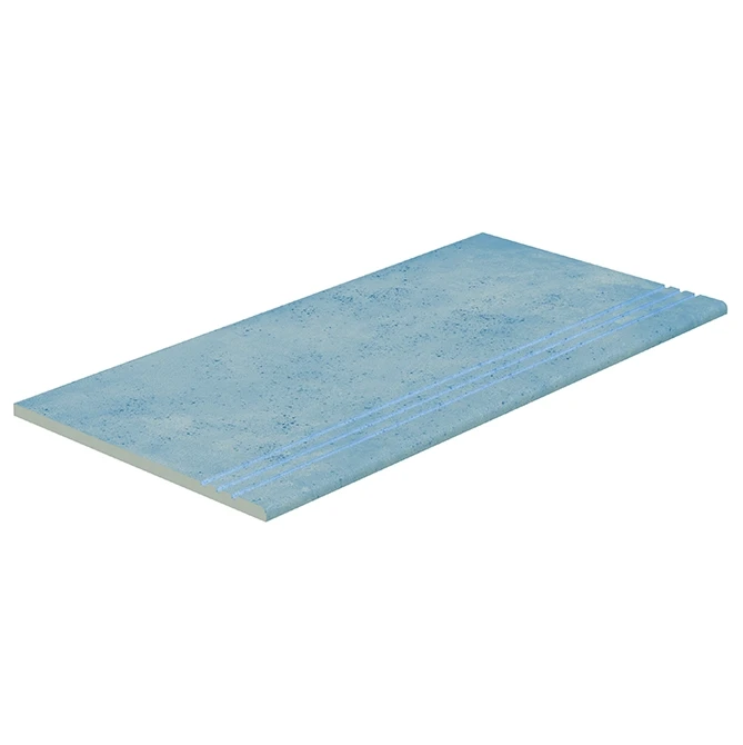 Relax Pastel Blue Peldaño Antideslizantees una solución antideslizante de porcelana con textura superficial especial, diseñada para garantizar un acceso seguro en escaleras de piscinas. Destaca por su estética e higiene tanto en áreas de uso colectivo como en proyectos privados.