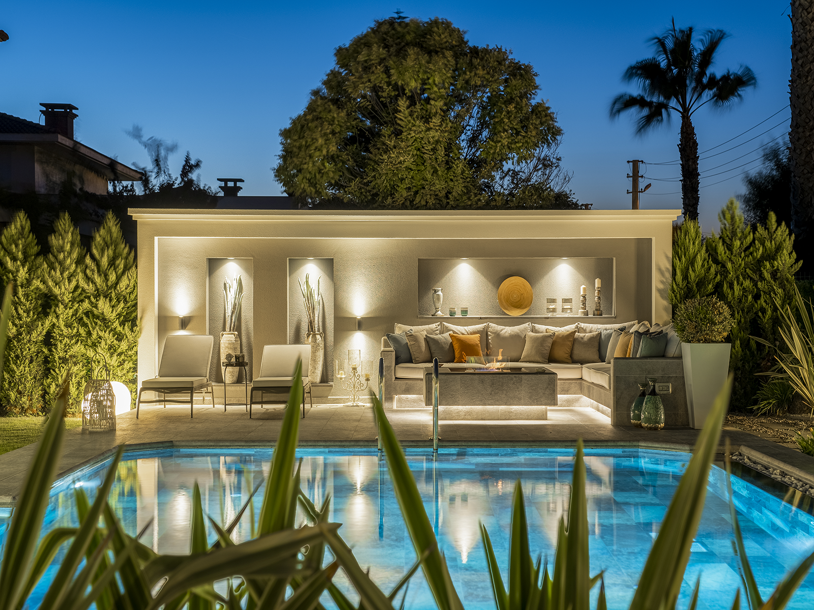 El proyecto ubicado en Çeşme, İzmir, combina el diseño contemporáneo de exteriores con la potencia estética de las porcelanas Serapool. El conjunto de asientos fijo, diseñado con losetas porcelánicas Pool Garden Grey, crea un espacio de vida prestigioso junto a la piscina gracias a la sofisticada elegancia de los tonos grises. La loseta para piscina Olcay Mix aporta una atmósfera fresca y equilibrada al área de natación. La baja absorción de agua de la porcelana, inferior al 0,5%, garantiza la durabilidad de la estructura. Su alta resistencia a los rayos UV, productos químicos y choques térmicos asegura un confort exterior duradero. El valor antideslizante PTV ≥ 45° ofrece seguridad y mejora la experiencia del usuario. La solución arquitectónica fija que elimina problemas de almacenamiento para los muebles de jardín facilita su uso. No es solo un área de descanso; es un diseño integral que ofrece una experiencia de vida funcional y lujosa, adaptada al entorno mediante transiciones estéticas.