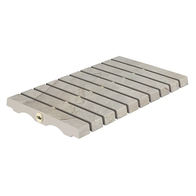 La Beige Stone Grille Flex est un complément 100 % porcelaine qui, grâce à sa structure portable et flexible, s’adapte parfaitement aux bords de piscines aux formes variées. Elle offre une solution esthétique, durable et hygiénique pour les projets modernes.