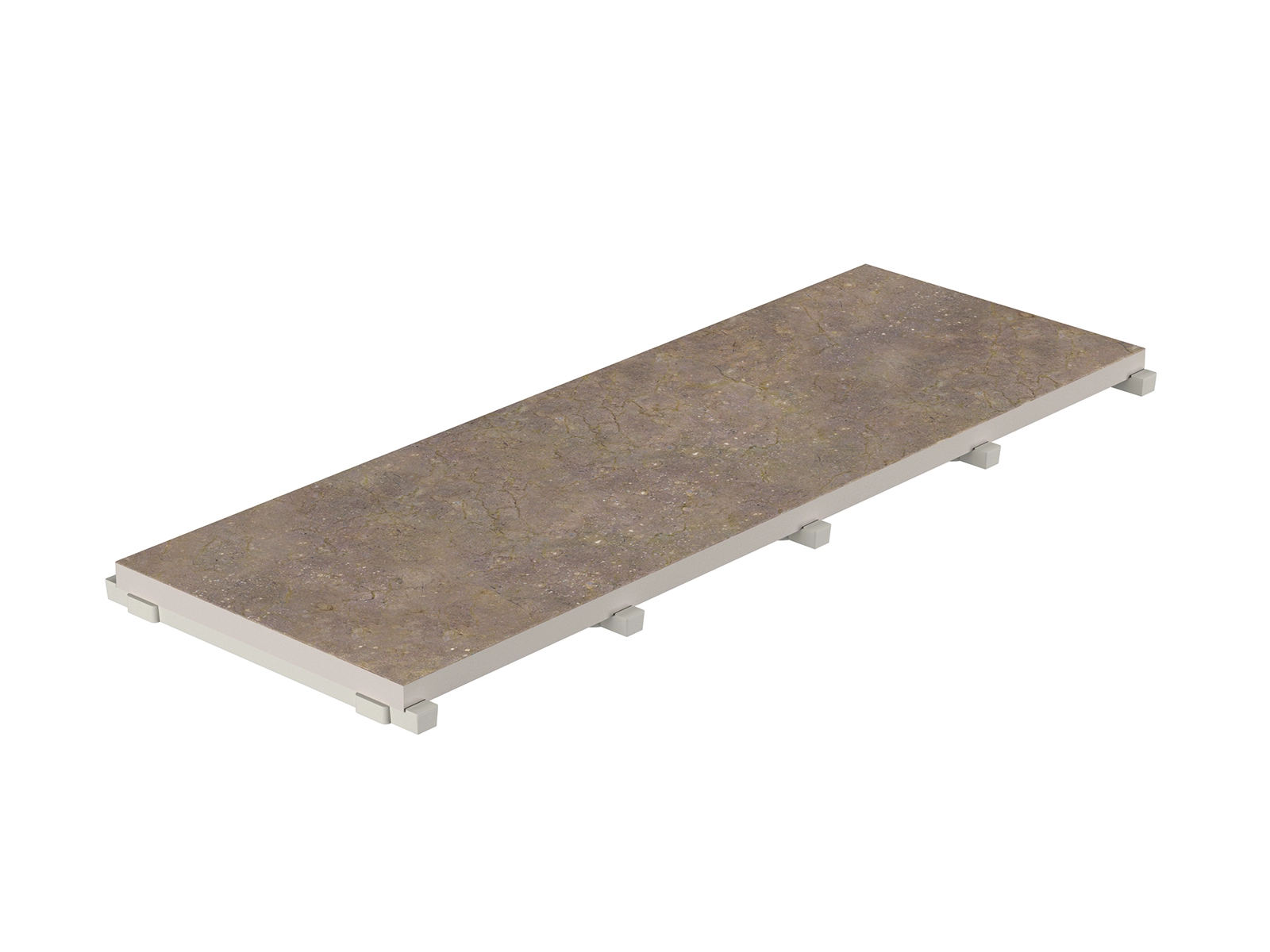 Natural Mocha Grille Cachée Monobloc est une solution 100 % porcelaine spécialement conçue pour les projets qui ne souhaitent pas adopter l’apparence classique des grilles de piscine. Grâce à sa structure portable et modulaire, elle offre à la fois une réponse esthétique et technique pour les systèmes de débordement, tout en créant une harmonie parfaite avec les carreaux antidérapants de terrasse.