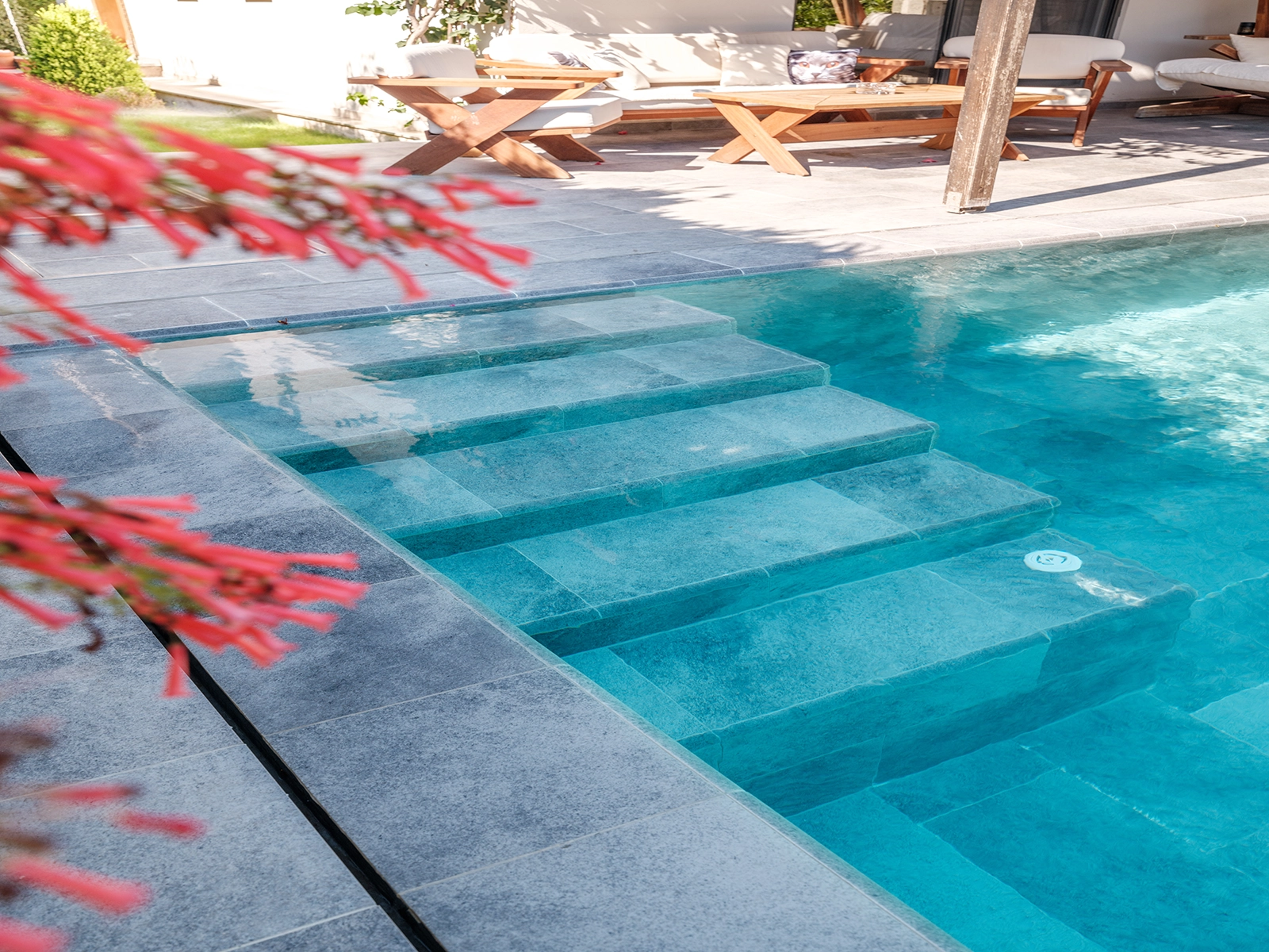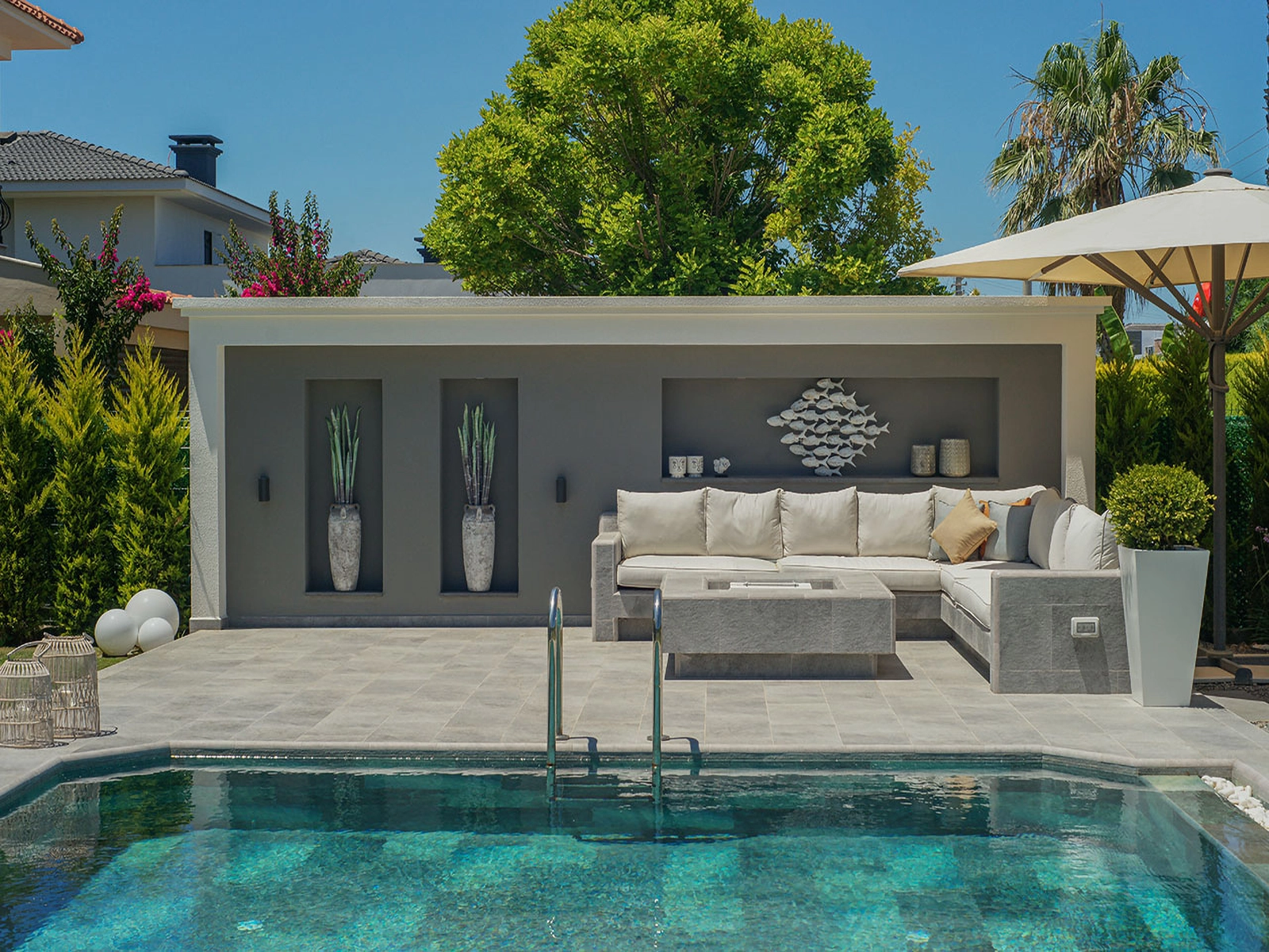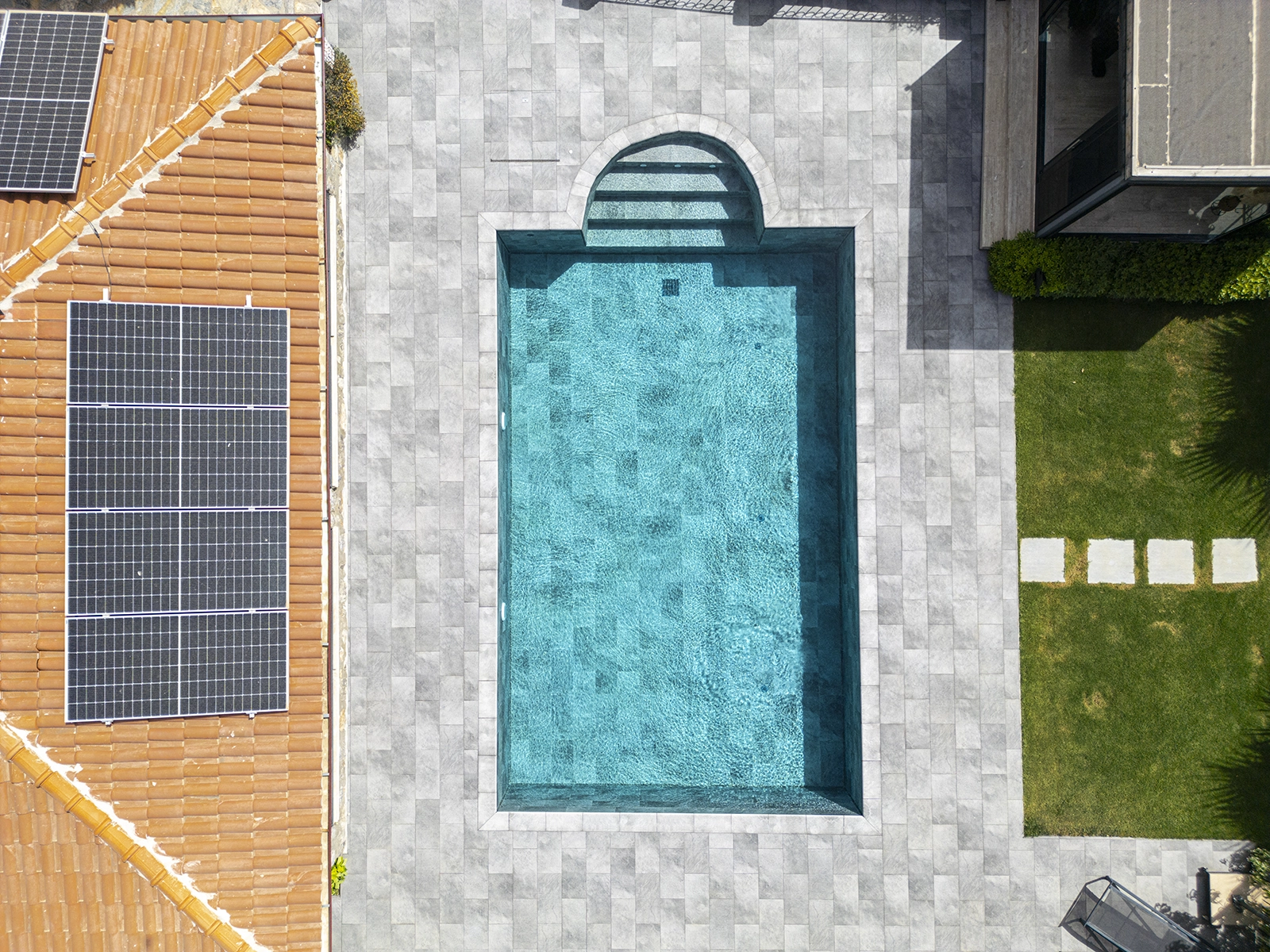 Серия Pool Garden Grey — это фарфоровая плитка для бассейнов, которая выделяется как визуальной целостностью, так и технической стойкостью, разработанная для современных бассейнов. Эта плитка, сочетающая вид натурального камня и современные линии, изготовлена из 100% фарфора и придает пространству сильные и сбалансированные акценты. Плавные переходы серых оттенков и текстурированная поверхность делают Pool Garden Grey идеальным выбором для частных домов и профессиональных общественных пространств.