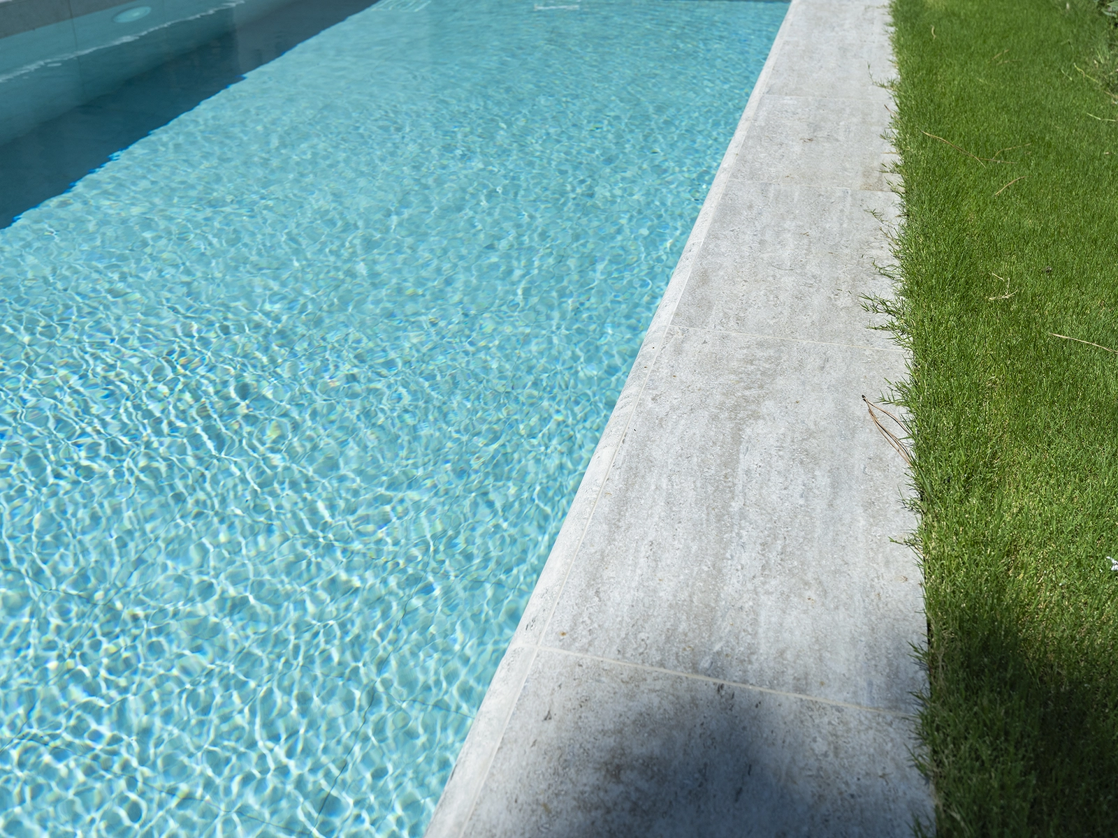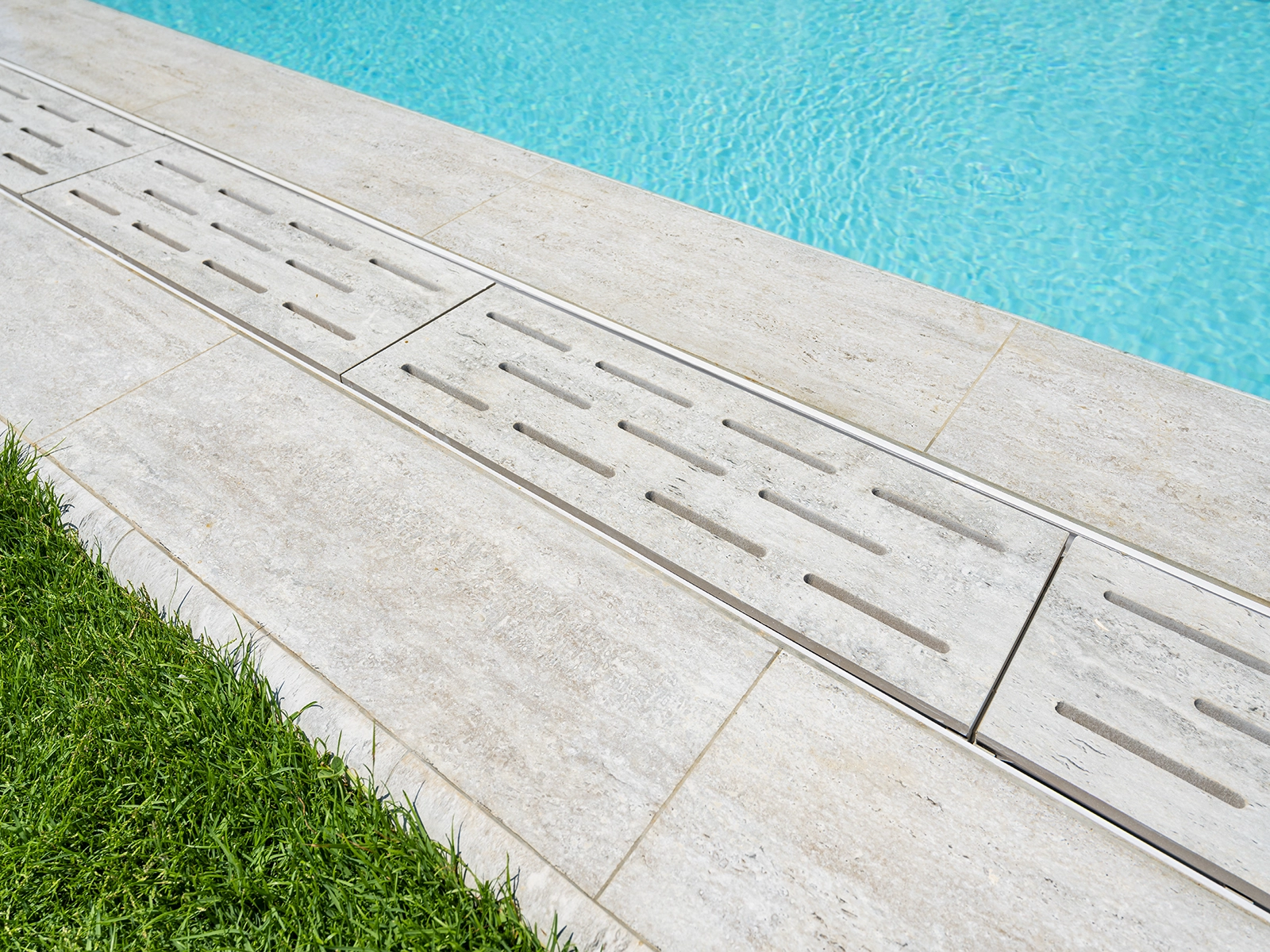 Silver Traverten Борт бассейна с переливной линией из керамогранита