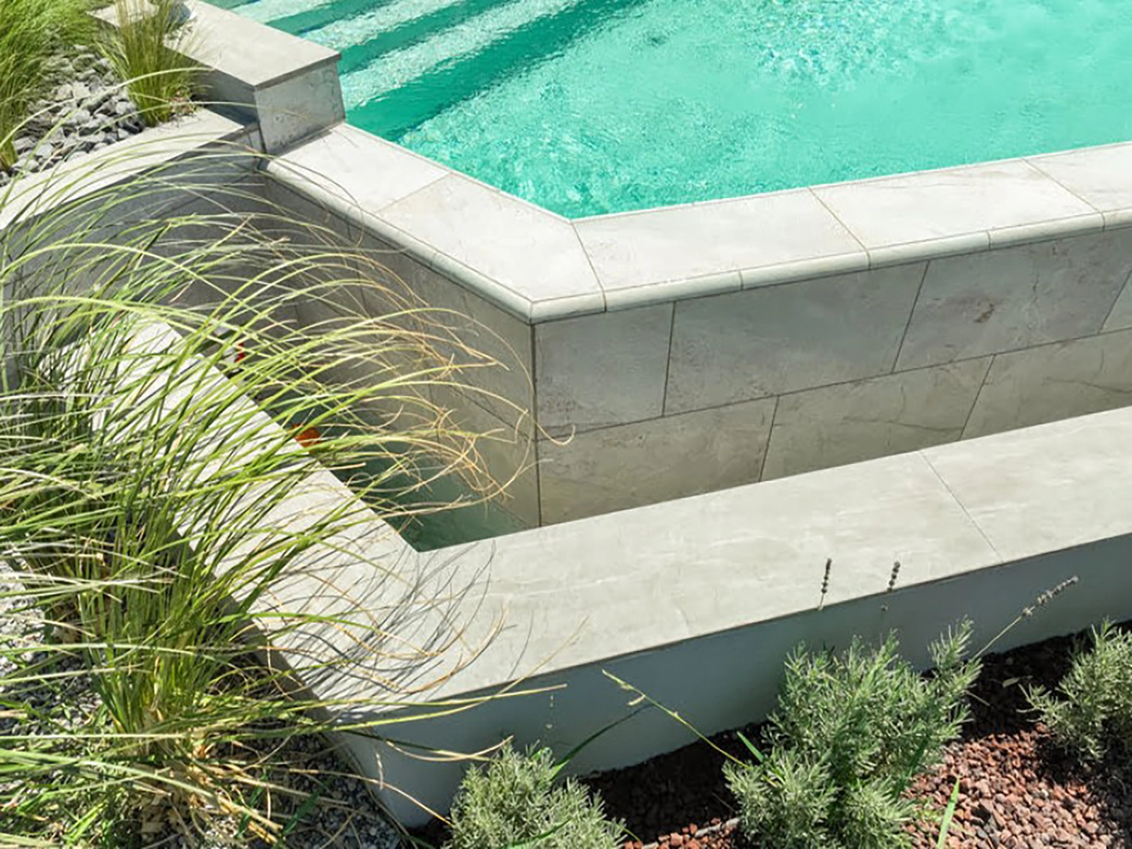 Элитная вилла, расположенная в Измире, дополняет свои изящные архитектурные детали фарфоровыми решениями Serapool с текстурой натурального камня. Серия Antique Beige, используемая в основании бассейна, придаёт воде мягкий переход и спокойную атмосферу благодаря теплым бежевым оттенкам. Плитки с коэффициентом водопоглощения ниже 0,5% обеспечивают долговечное использование. Обеспечивается высокая устойчивость к ультрафиолетовым лучам, химическим воздействиям и термическим ударам. Поверхность с противоскользящим значением PTV ≥ 45° повышает уровень безопасности. Внешняя угловая планка, внешний шотландский угол и внешний торцевой угол обеспечивают эстетическое и функциональное единство на краях бассейна. Реализация предлагает не только зону для плавания, но и роскошный жизненный опыт, объединяющий эстетику, безопасность и комфорт.