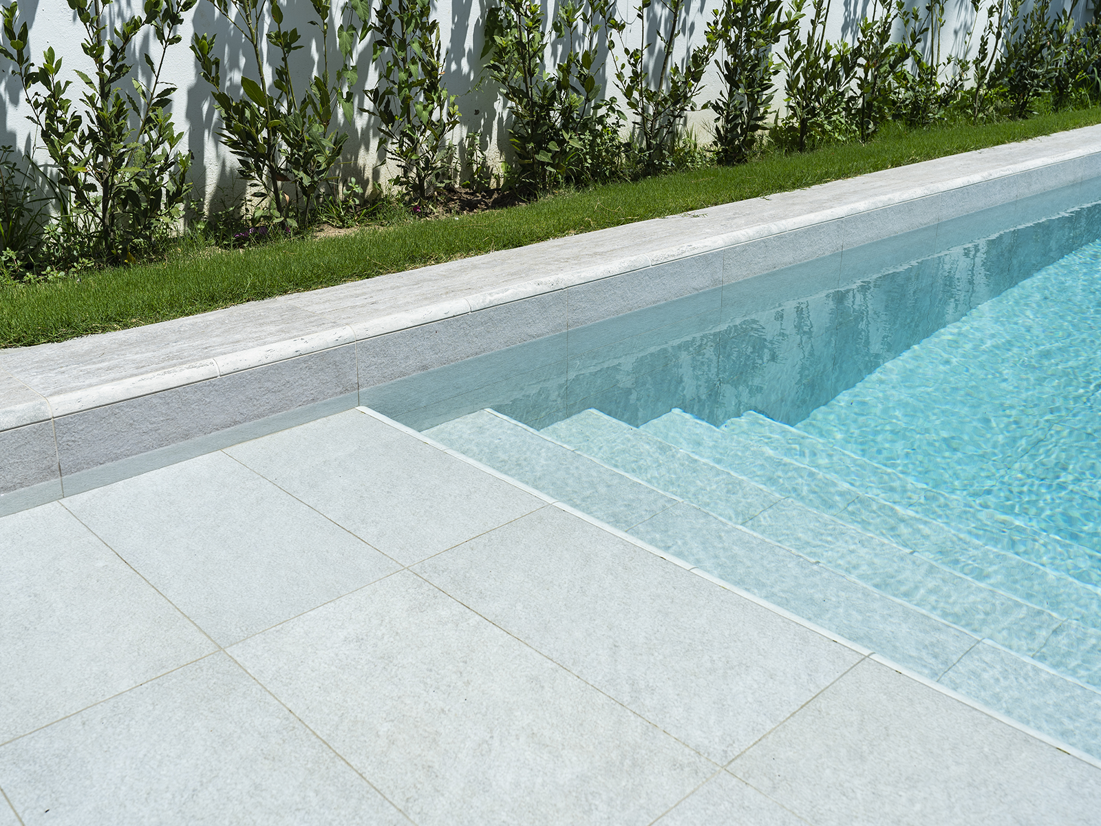 Вилла, расположенная в Илидже, Измир, объединяет современную архитектуру с фарфоровыми изделиями Serapool с текстурой натурального камня. Серия Snow White, используемая в основании бассейна, придает воде свежую и изящную атмосферу благодаря белым оттенкам. Плитки с коэффициентом водопоглощения ниже 0,5% обеспечивают долговечную эксплуатацию и демонстрируют высокую устойчивость к ультрафиолетовым лучам, химическим воздействиям и термическим ударам. Поверхность с противоскользящим значением PTV ≥ 45° повышает безопасность в бассейне и вокруг него. Противоскользящие плитки для террасы Silver Traverten, внешняя угловая планка Snow White и внешняя угловая планка Silver Traverten обеспечивают эстетическую целостность в зонах перехода. Реализация предлагает не только зону для плавания, но и создает роскошный жизненный опыт, объединяя комфорт, безопасность и визуальную гармонию.