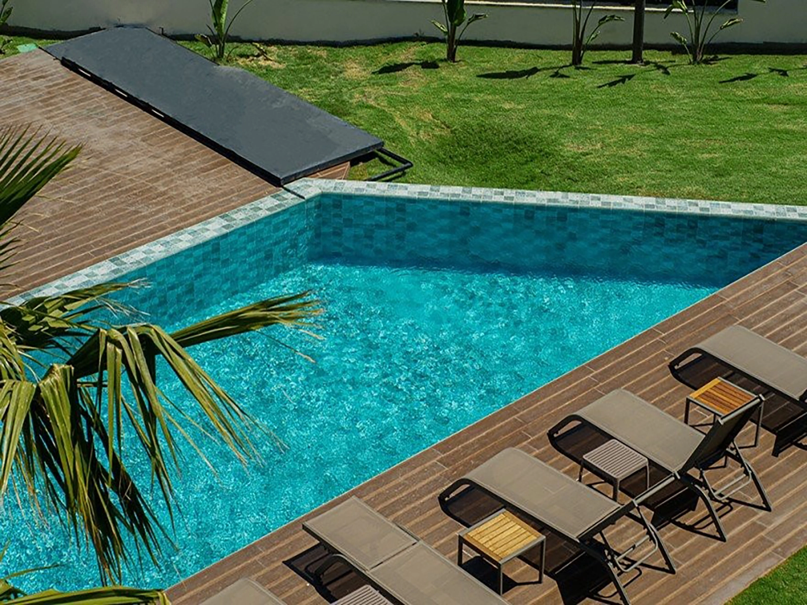 Вилла, расположенная в Чешме, Измир, объединяет эстетику натуральных материалов с фарфоровыми решениями Serapool, предлагая изысканный опыт внешнего пространства. Серия Sukabumi, используемая в основании бассейна, придает воде тропическую прозрачность и спокойную атмосферу благодаря натуральным зеленым оттенкам. Плитки с коэффициентом водопоглощения ниже 0,5% обеспечивают долговечное использование. Кроме того, они демонстрируют высокую устойчивость к ультрафиолетовым лучам, химическим воздействиям и термическим ударам. Поверхность с противоскользящим значением PTV ≥ 45° повышает безопасность на влажных участках. Внешняя угловая планка Sukabumi создает эстетичные переходы на краях бассейна. Реализация предлагает не только зону для плавания, но и гармоничный с природой, комфортный и безопасный жизненный опыт.